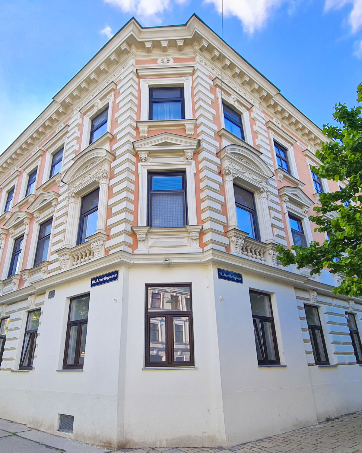 1140 ViennaThe charming apartment building at Linzerstraße 381a, 1140 Vienna, was extensively renovated by 3SI Immogroup in 2020; in addition to the staircase, the street façade, which was already noticeably outdated, was also revitalised and has since shone in new old splendour. -