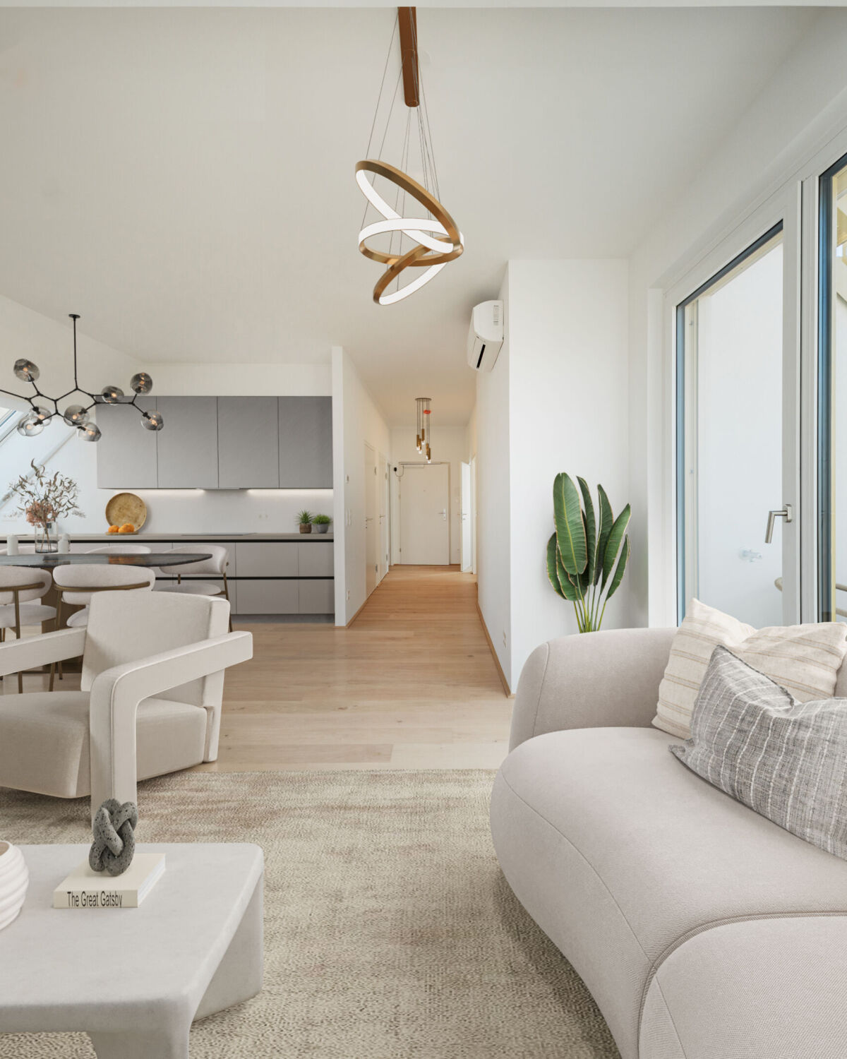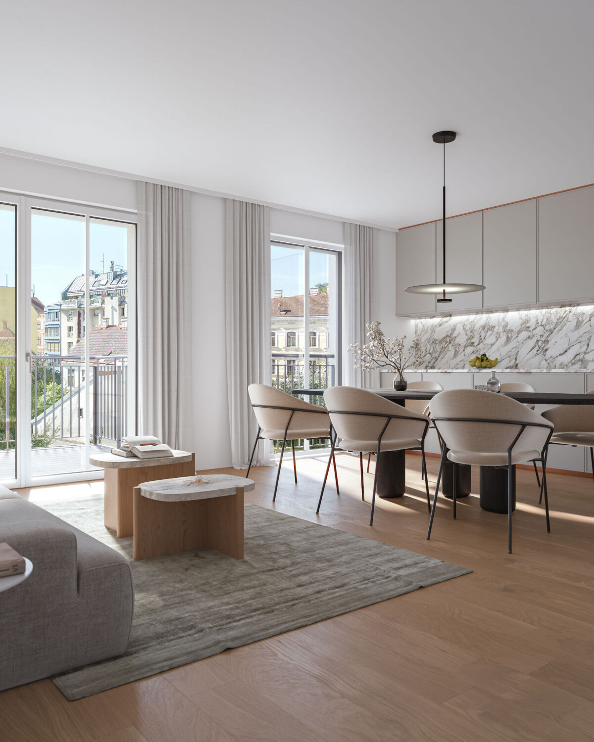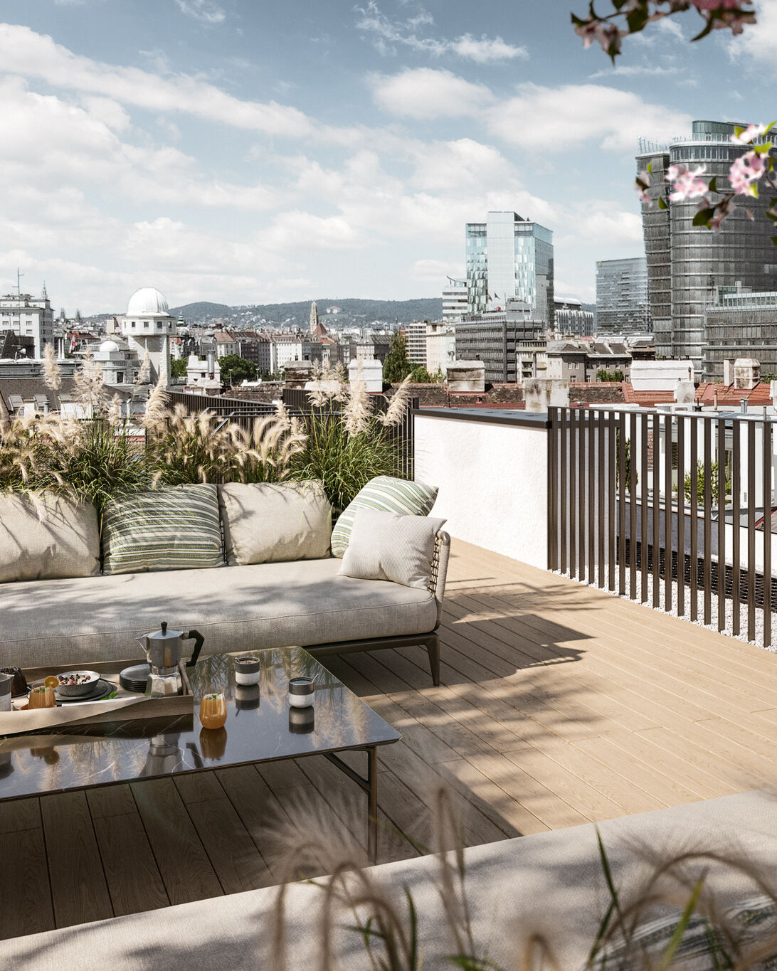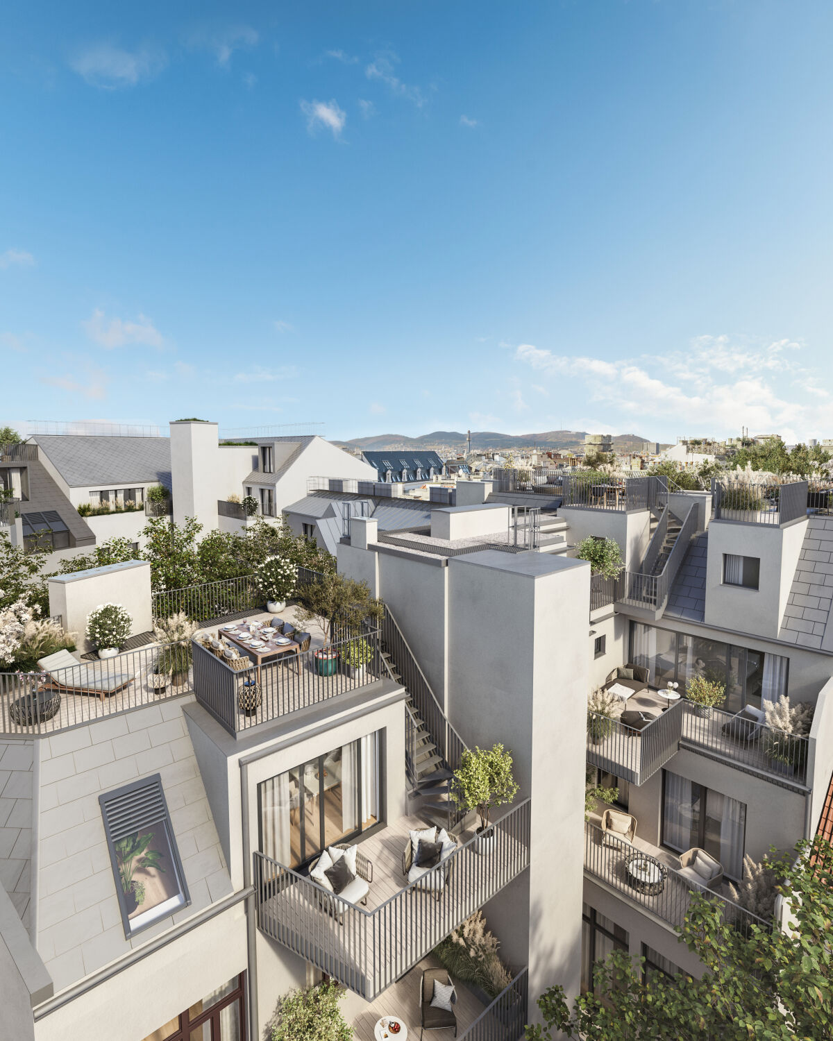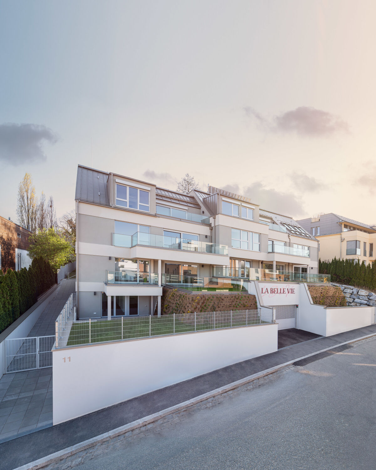 The innovative new build project "La Belle Vie" by 3SI Immogroup at Raffelspergergasse 11-13, 1190 Vienna, enjoys a quiet location with views of the Viennese vineyards. A total of 19 modern, light-flooded condominiums are located in two former residential buildings that were completely gutted, refurbished and rebuilt from the inside out in 2020. With floor areas ranging from 44 m² to a generous 156 m², attractive open spaces, high-quality luxury fittings and an in-house underground car park, La Belle Vie offers a lifestyle at the highest level. -