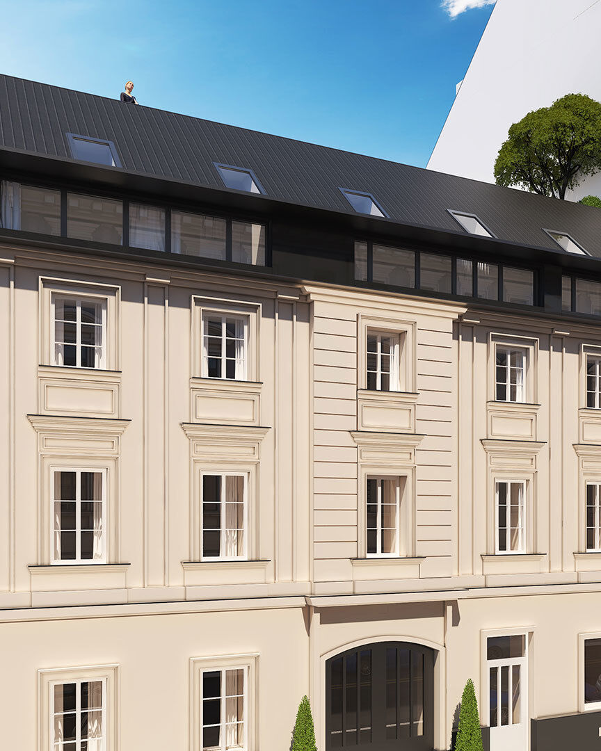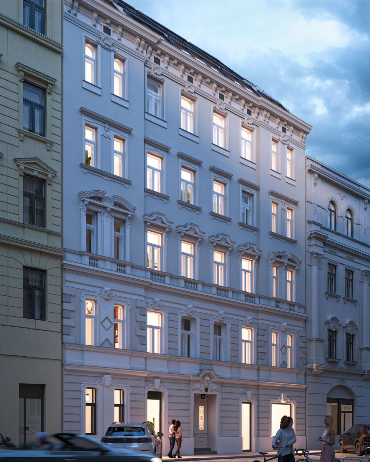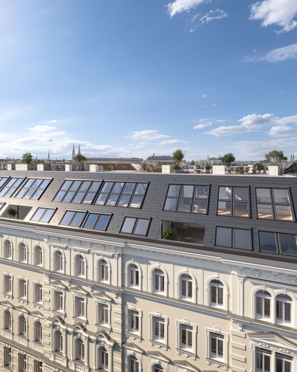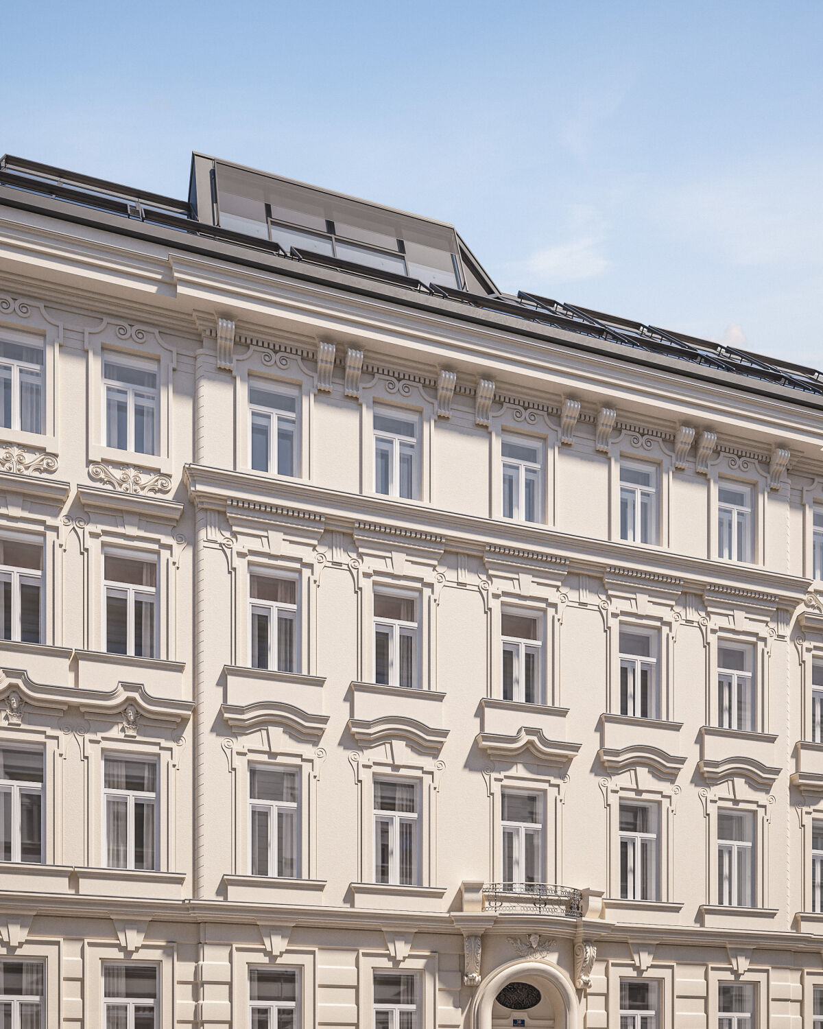 1030 ViennaCompletion: expected 4th quarter 2024The Gründerzeit building in Landstraßer Hauptstraße, built around 1900, is being extensively refurbished by 3SI Immogroup and connected to Vienna's district heating network. The 26 freehold flats offer living space of between 32 and 187 m², 1 to 4 rooms and newly built balconies and terraces. Five exclusive top-floor flats - two single-storey and two maisonette flats and a generously planned maisonette penthouse with pool, private lift and fantastic views over the city - are being created as part of the top-floor extension. -