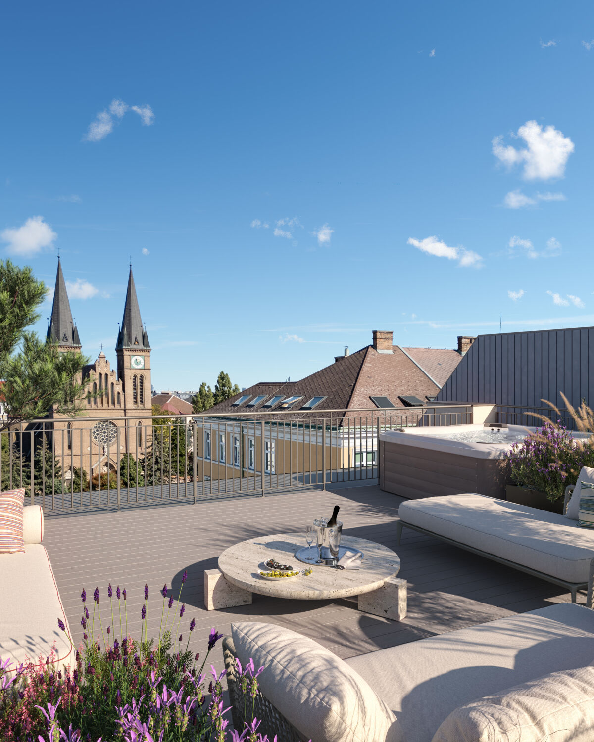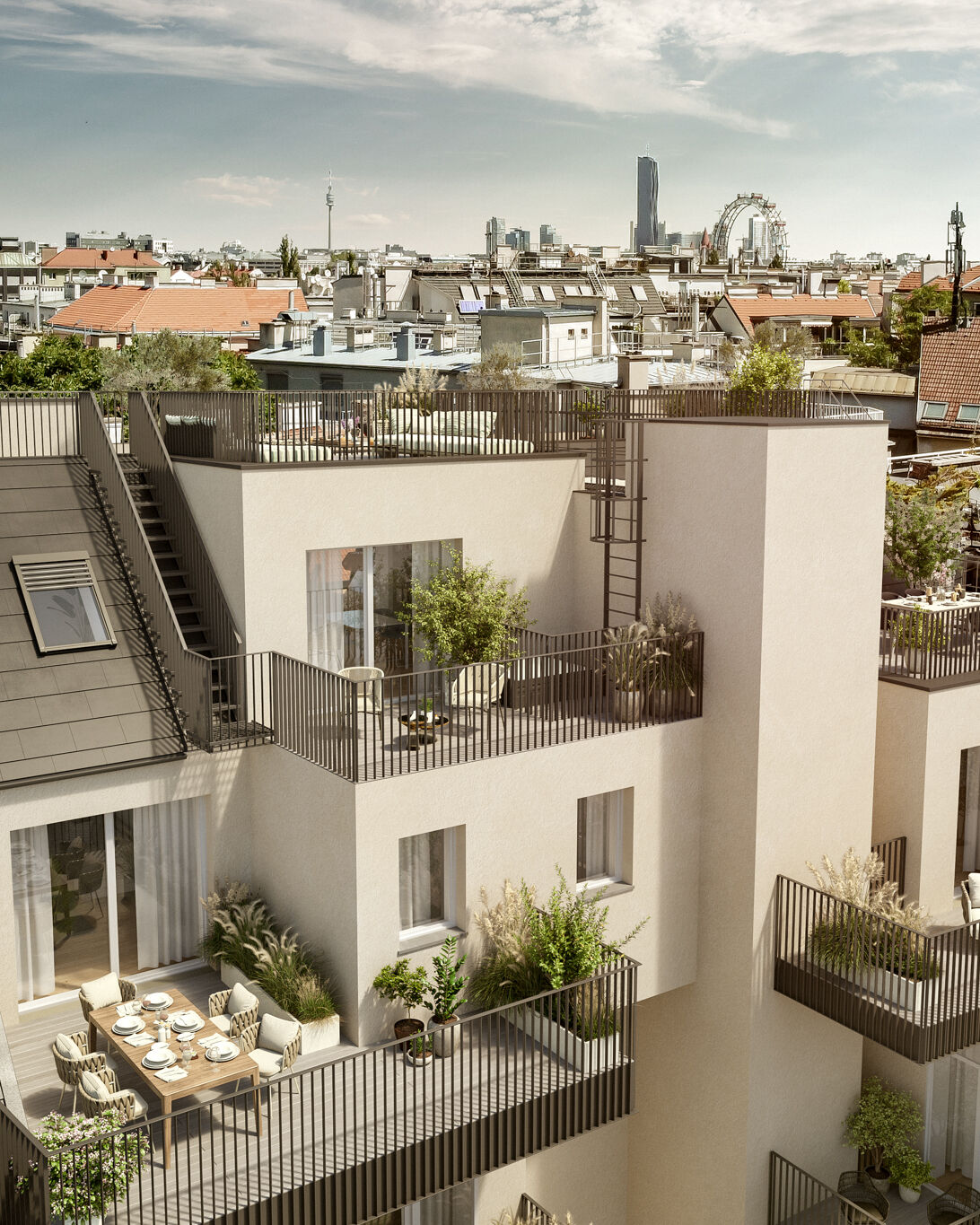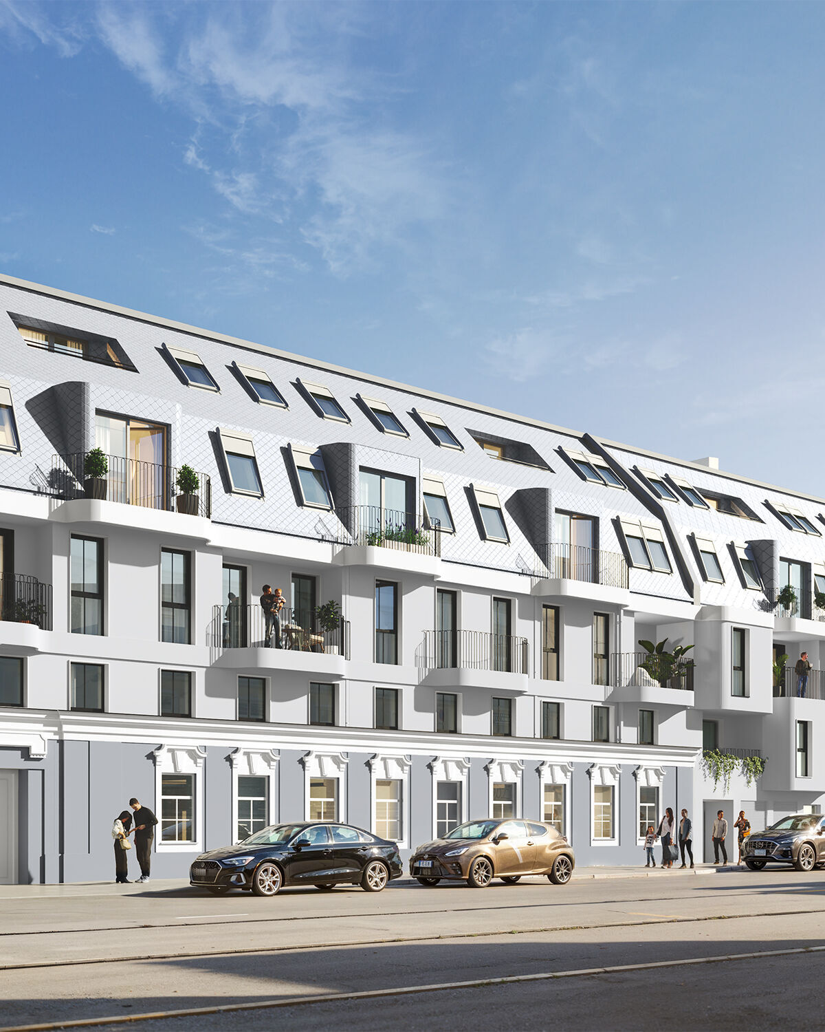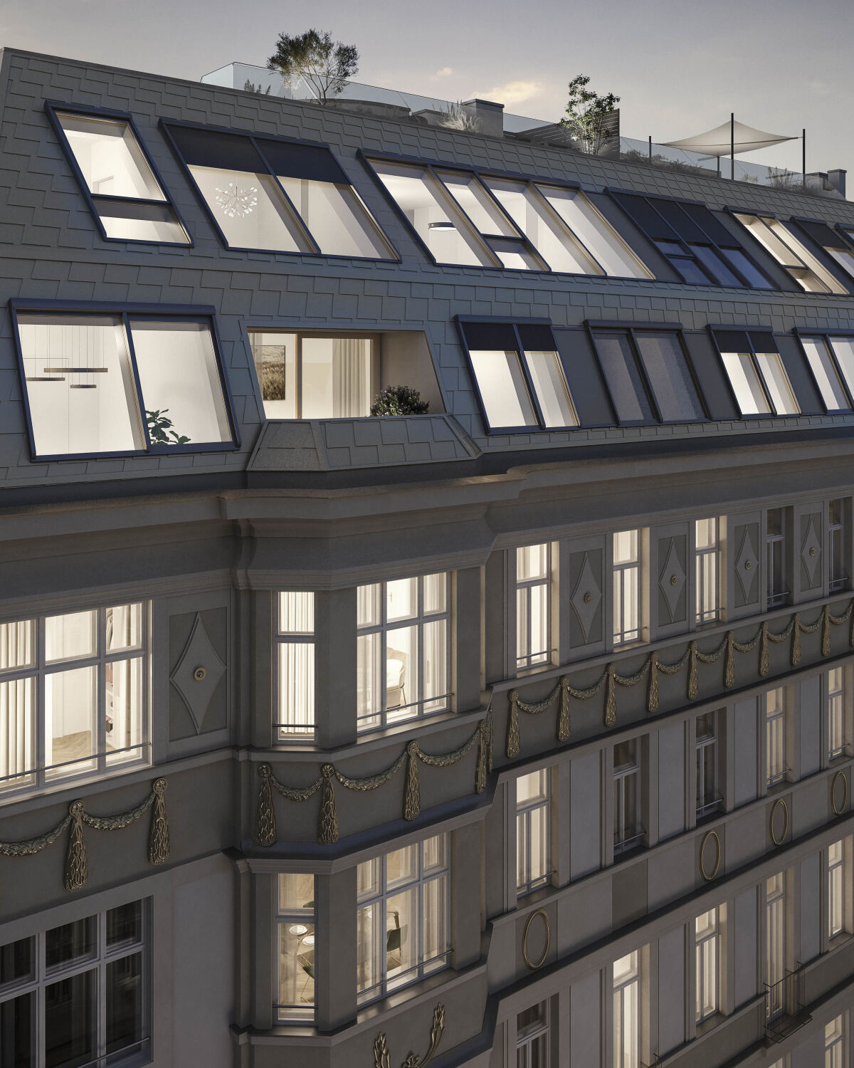 1030 ViennaCompletion: expected 4th quarter 2024The Gründerzeit building in Landstraßer Hauptstraße, built around 1900, is being extensively refurbished by 3SI Immogroup and connected to Vienna's district heating network. The 26 freehold flats offer living space of between 32 and 187 m², 1 to 4 rooms and newly built balconies and terraces. Five exclusive top-floor flats - two single-storey and two maisonette flats and a generously planned maisonette penthouse with pool, private lift and fantastic views over the city - are being created as part of the top-floor extension. -