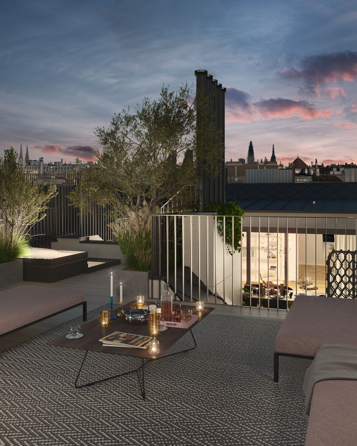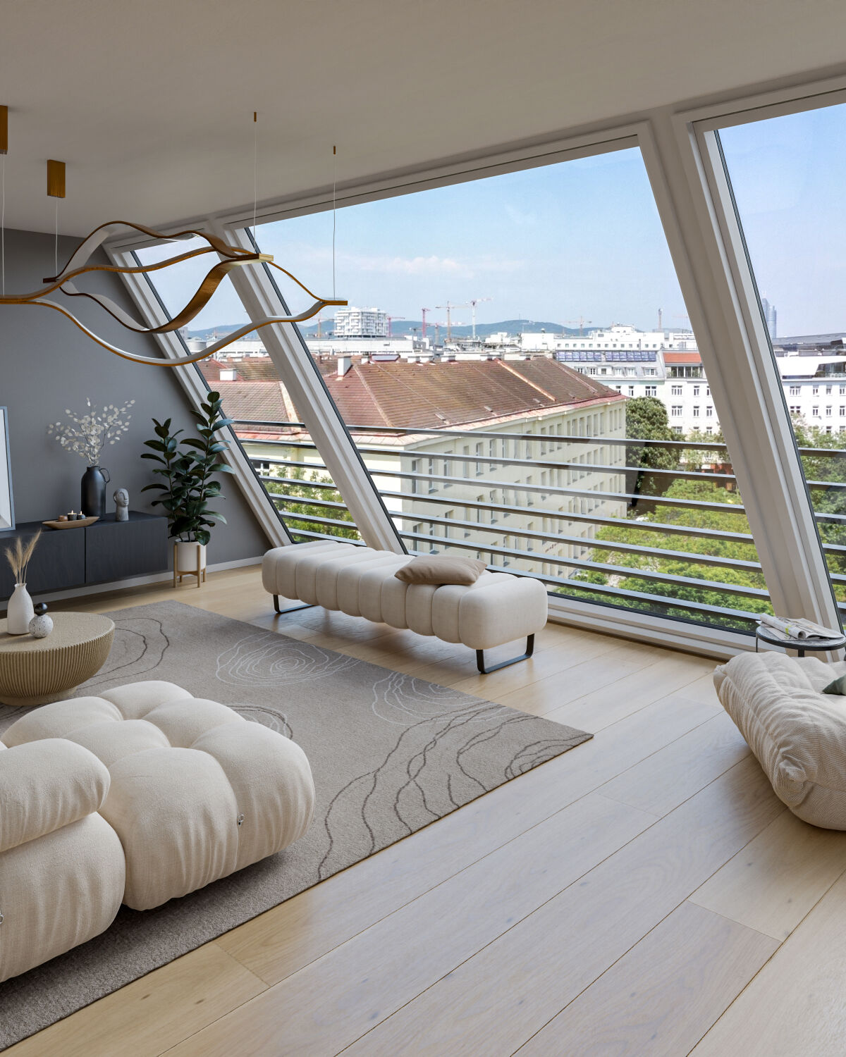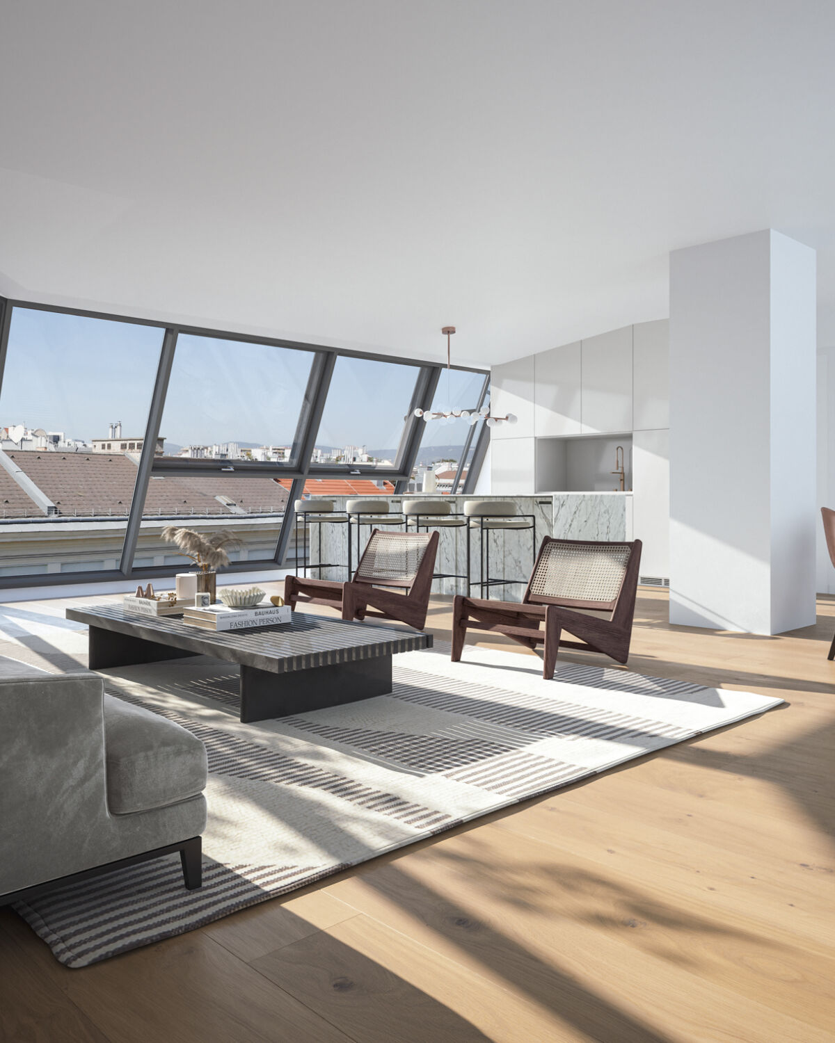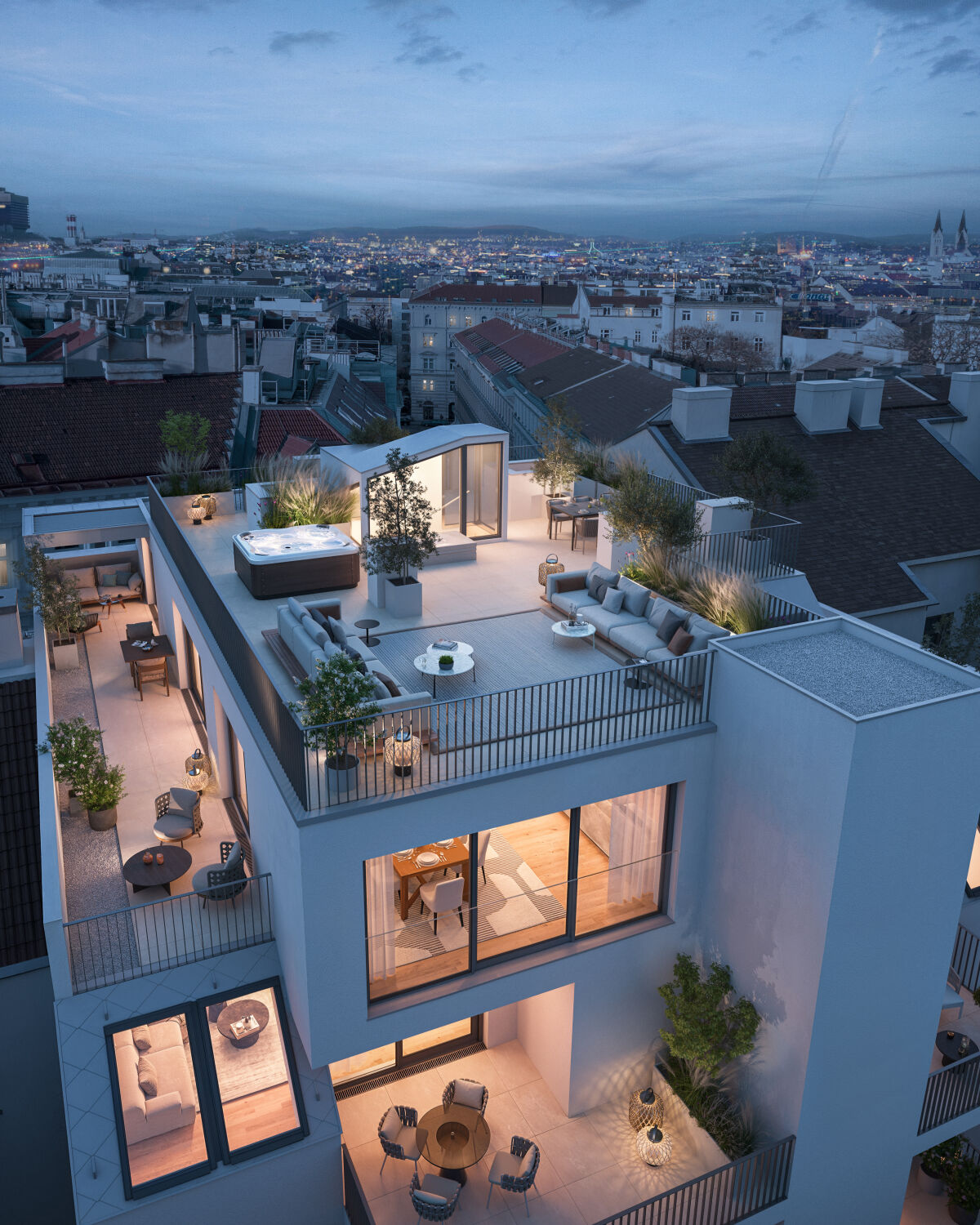1030 ViennaCompletion: expected 4th quarter 2024The Gründerzeit building in Landstraßer Hauptstraße, built around 1900, is being extensively refurbished by 3SI Immogroup and connected to Vienna's district heating network. The 26 freehold flats offer living space of between 32 and 187 m², 1 to 4 rooms and newly built balconies and terraces. Five exclusive top-floor flats - two single-storey and two maisonette flats and a generously planned maisonette penthouse with pool, private lift and fantastic views over the city - are being created as part of the top-floor extension. -