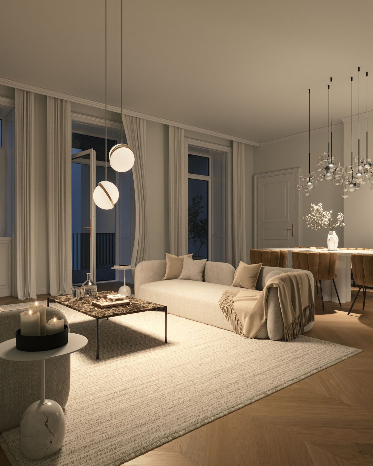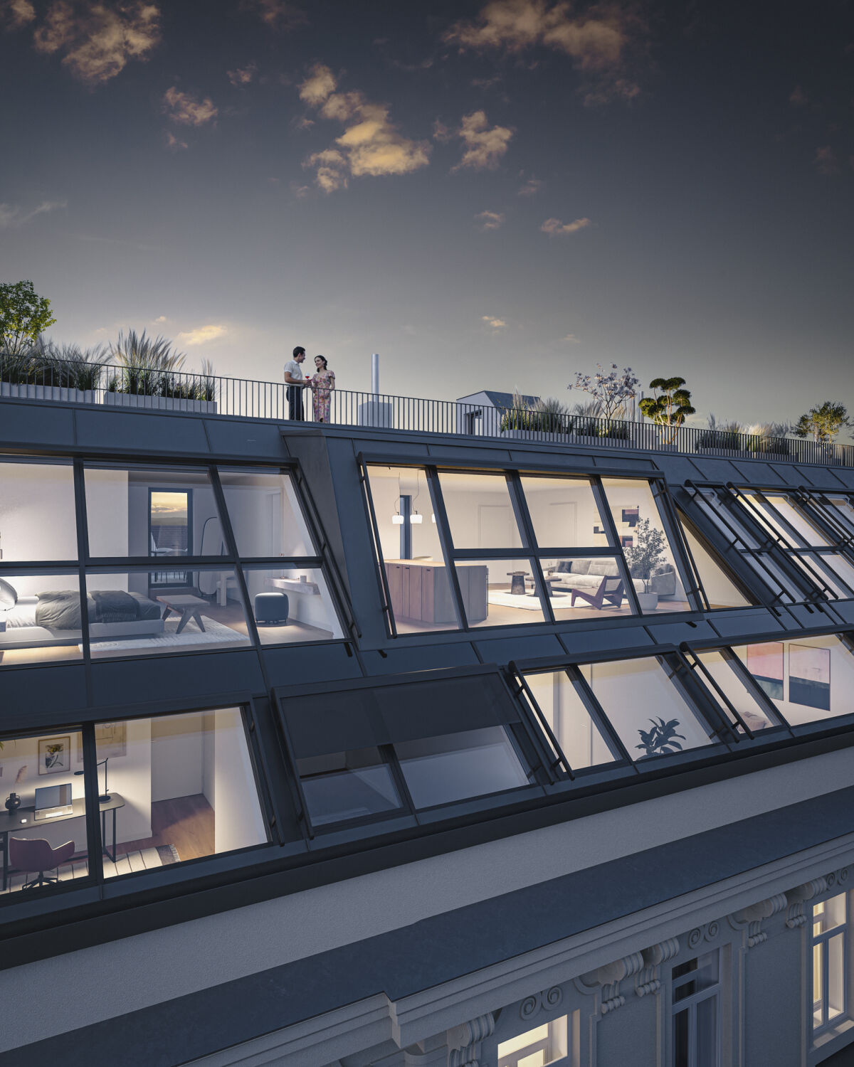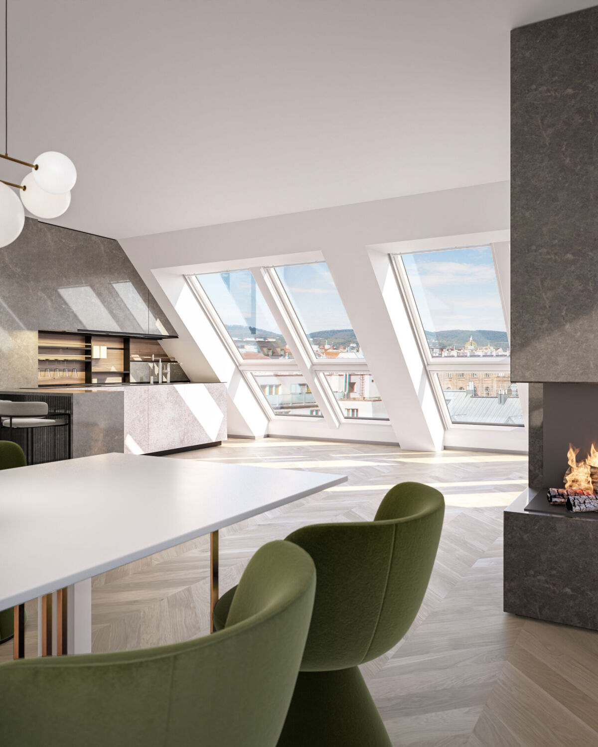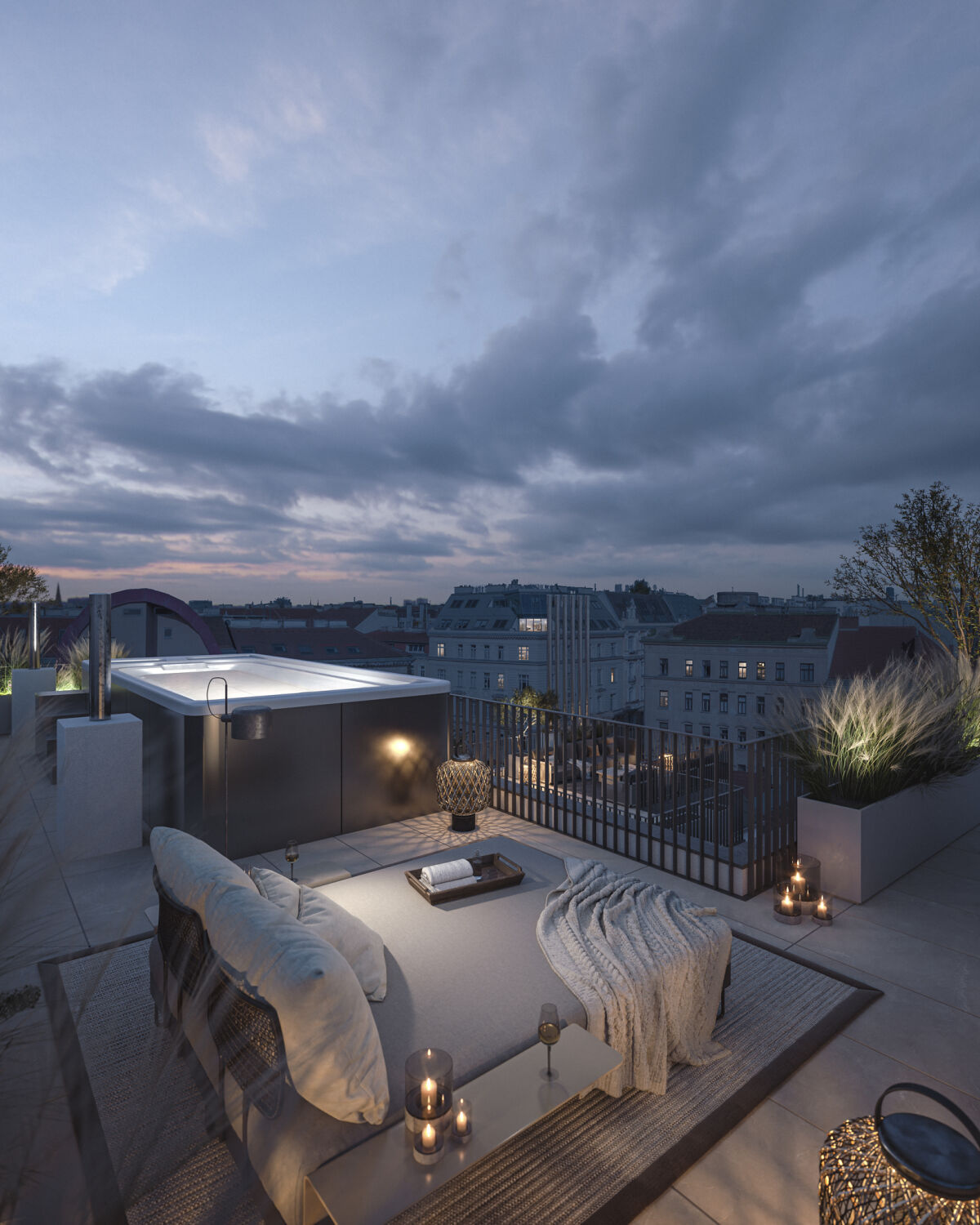 1030 ViennaCompletion: expected 4th quarter 2024The Gründerzeit building in Landstraßer Hauptstraße, built around 1900, is being extensively refurbished by 3SI Immogroup and connected to Vienna's district heating network. The 26 freehold flats offer living space of between 32 and 187 m², 1 to 4 rooms and newly built balconies and terraces. Five exclusive top-floor flats - two single-storey and two maisonette flats and a generously planned maisonette penthouse with pool, private lift and fantastic views over the city - are being created as part of the top-floor extension. -