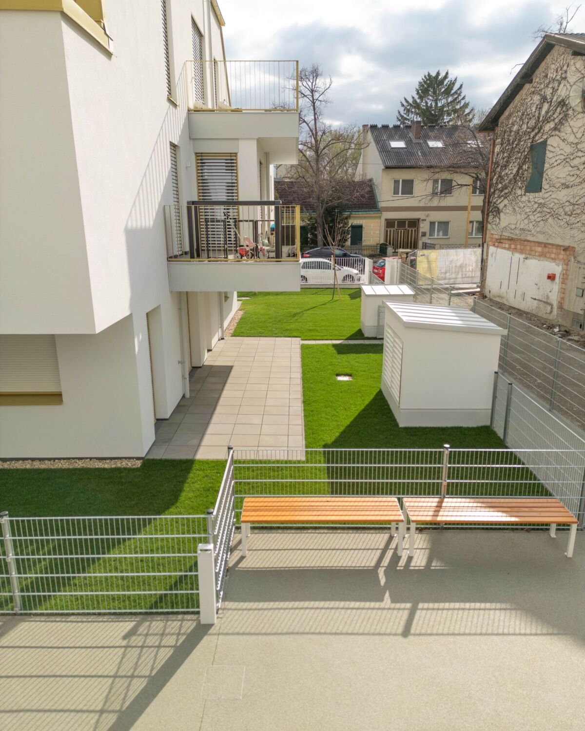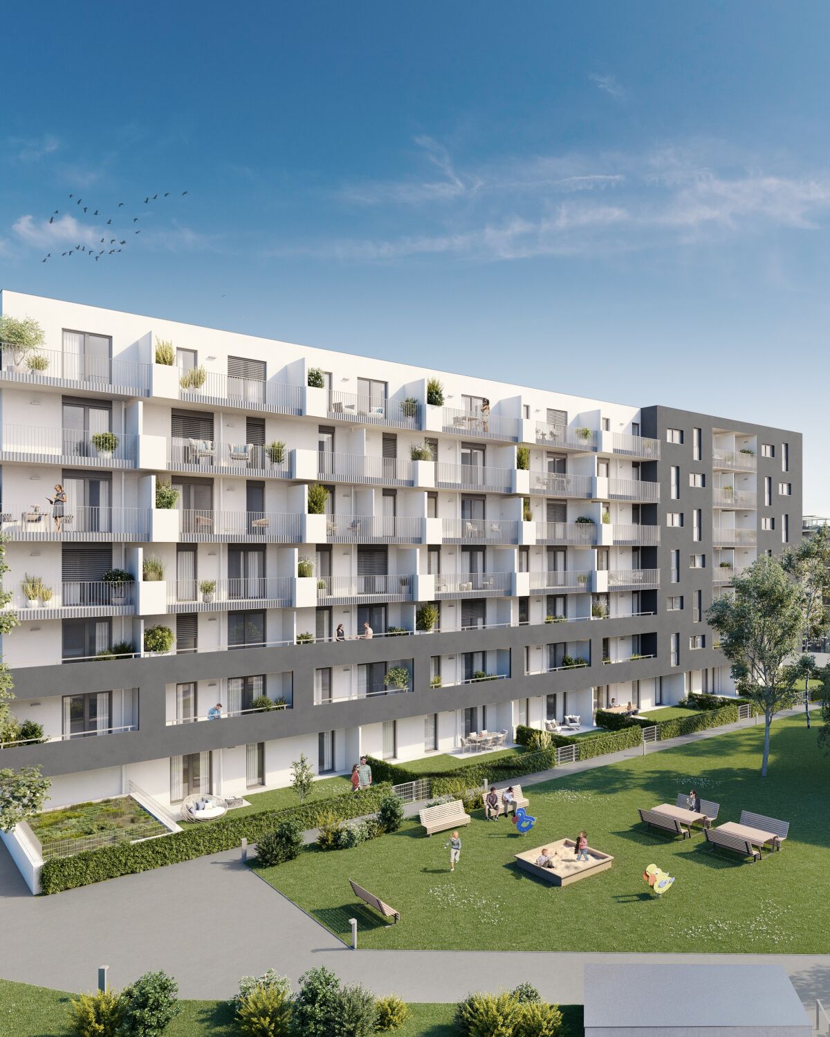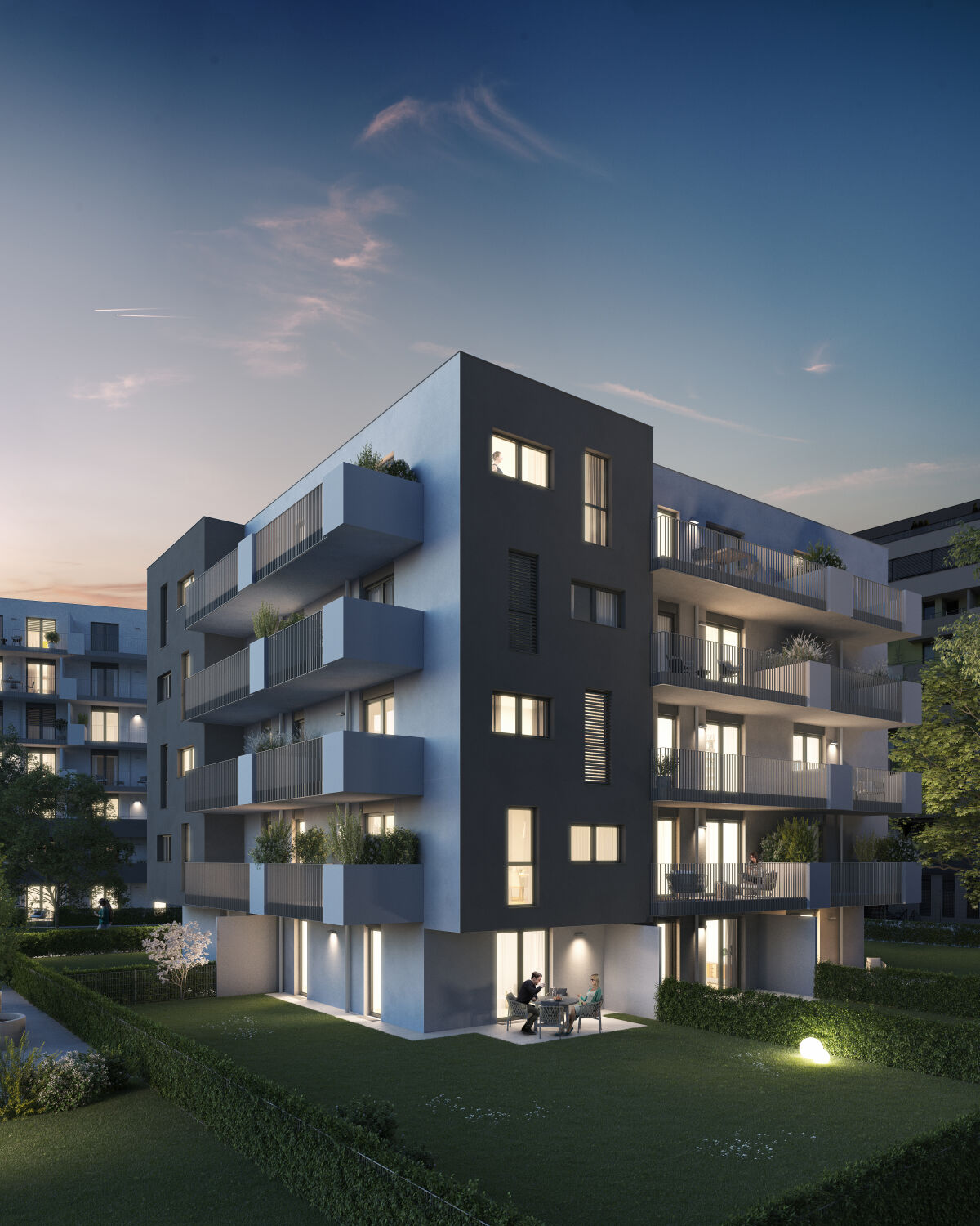 1220 ViennaCompletion: 1st quarter 2025At Freihof 9, 1220 Vienna, 3SI Immogroup is currently developing a high-quality, modern new-build complex consisting of 36 privately financed freehold flats and 2 terraced houses. The properties offer living space of between 33 and 116 m², 2 to 4 rooms, underground car parking spaces and attractive balconies, terraces and private gardens. In addition to the high-quality fixtures and fittings, a particular highlight is a spacious urban gardening area, which will be available to future residents - along with a bicycle storage room with an e-charging station. -