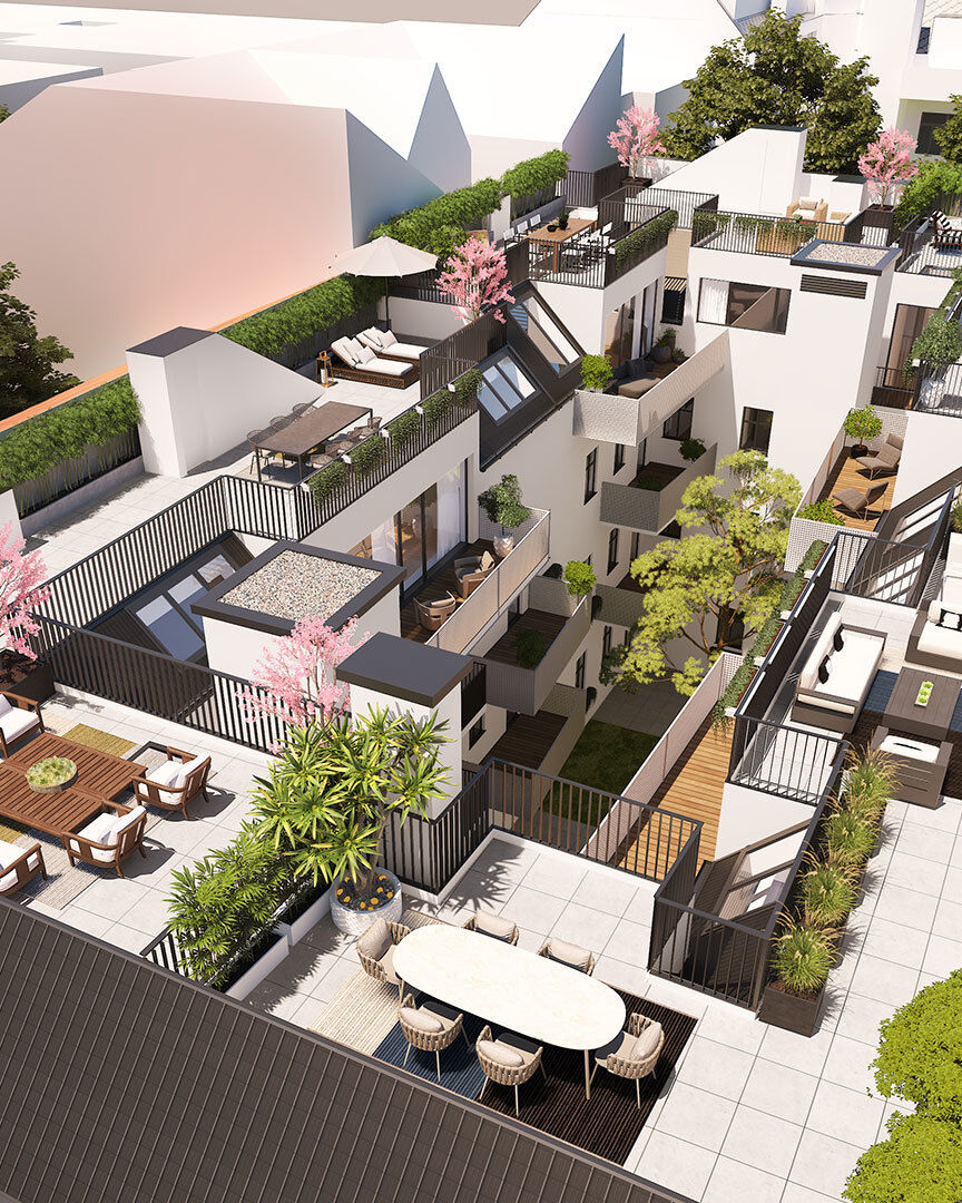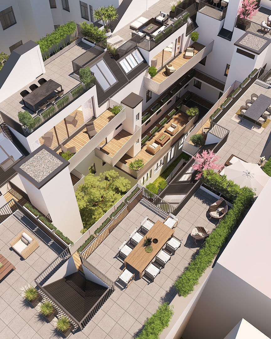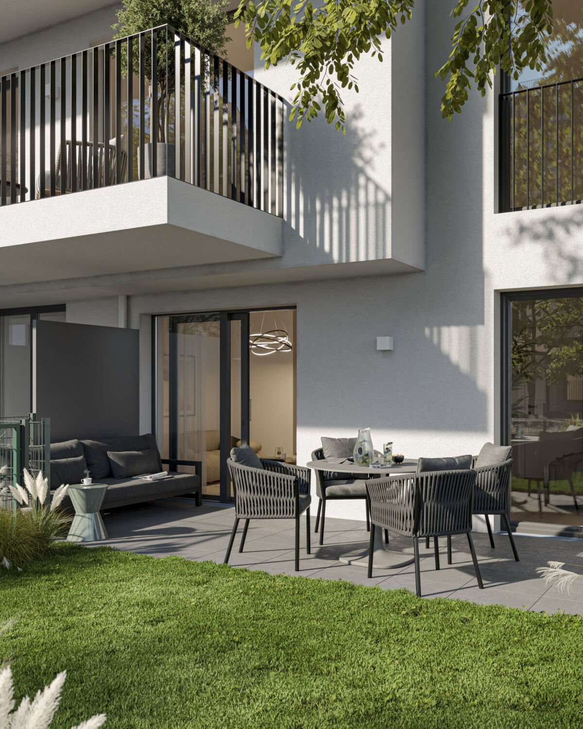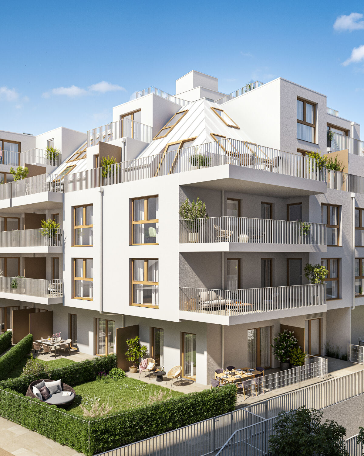 1220 ViennaCompletion: 1st quarter 2025At Freihof 9, 1220 Vienna, 3SI Immogroup is currently developing a high-quality, modern new-build complex consisting of 36 privately financed freehold flats and 2 terraced houses. The properties offer living space of between 33 and 116 m², 2 to 4 rooms, underground car parking spaces and attractive balconies, terraces and private gardens. In addition to the high-quality fixtures and fittings, a particular highlight is a spacious urban gardening area, which will be available to future residents - along with a bicycle storage room with an e-charging station. -