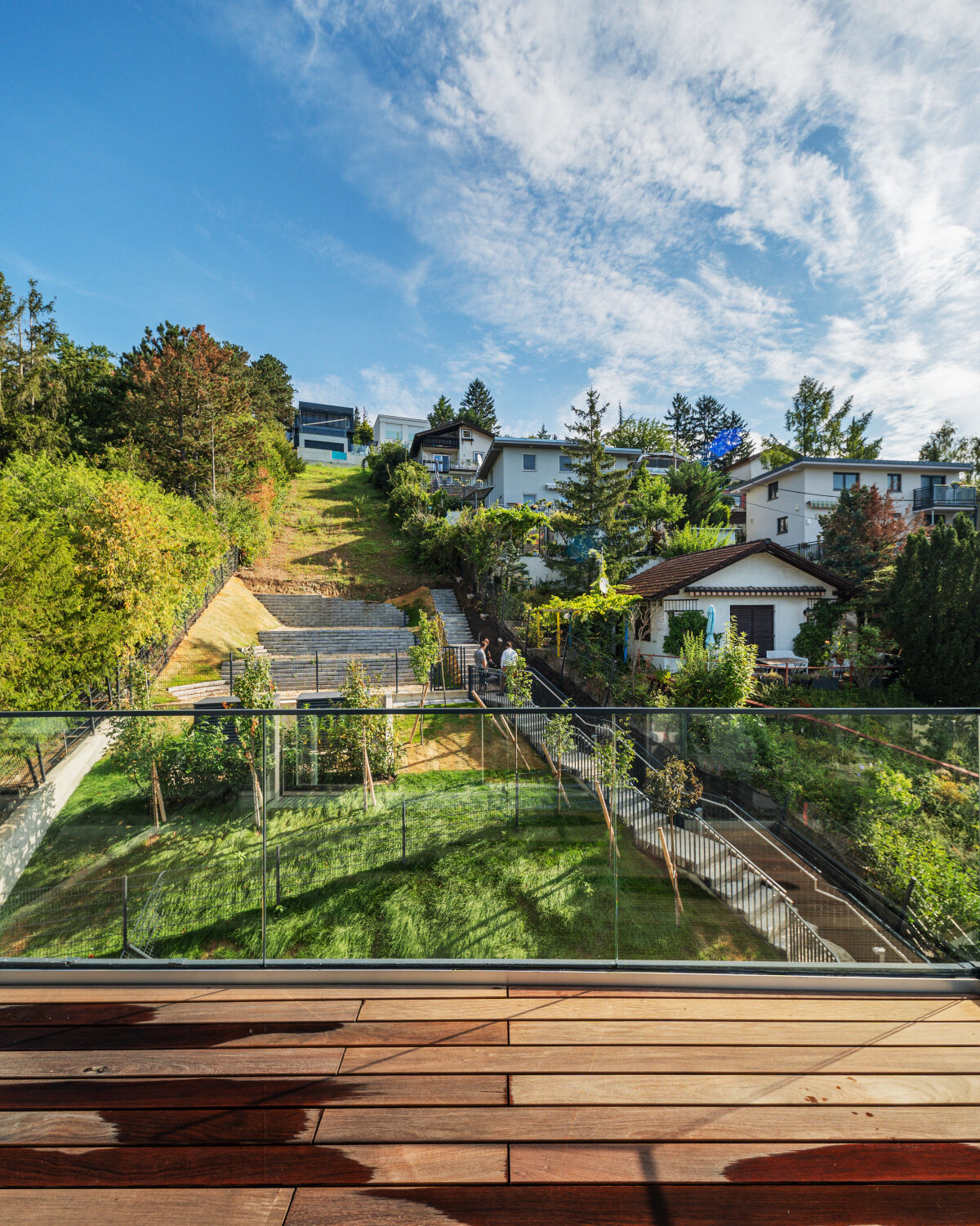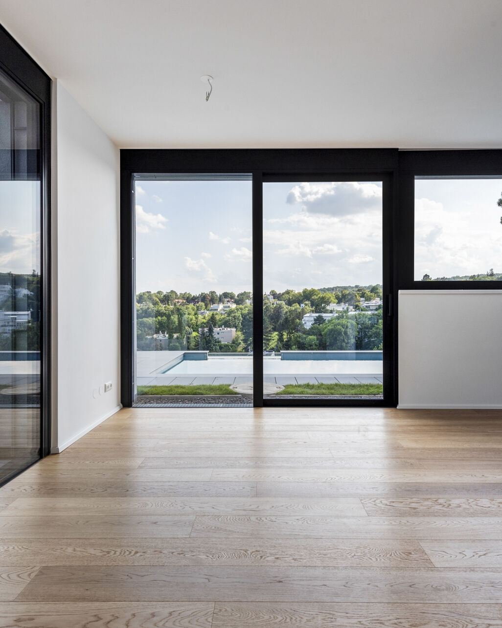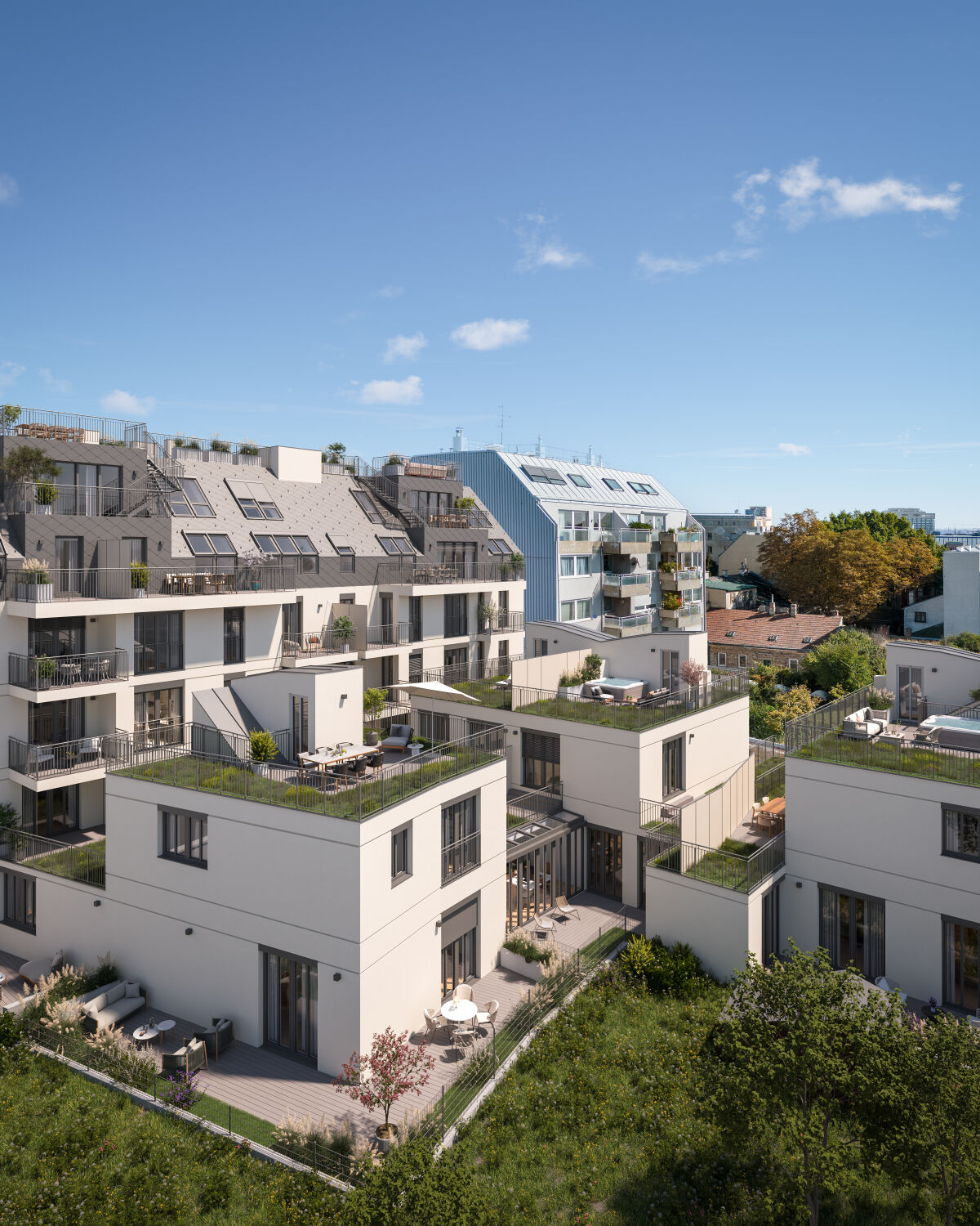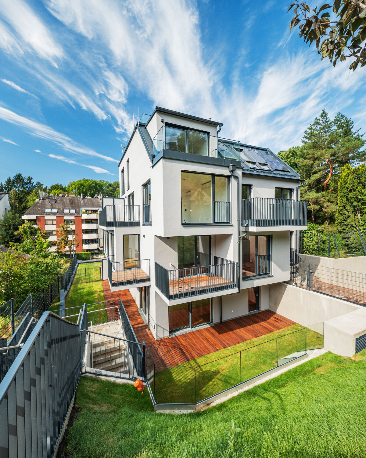 1190 ViennaNumber of apartments in total: 16At Hackenbergweg 43, 1190 Vienna, 17 exclusive villas with upmarket fittings are being built. The quiet location in the middle of the vineyards also impresses with a wonderful view of Vienna, which can be enjoyed without restriction from the private terraces and balconies. The skilfully designed villas are spread over 3 floors and are harmoniously complemented by private pools and parking spaces. The turnkey handover is scheduled for summer 2023. -