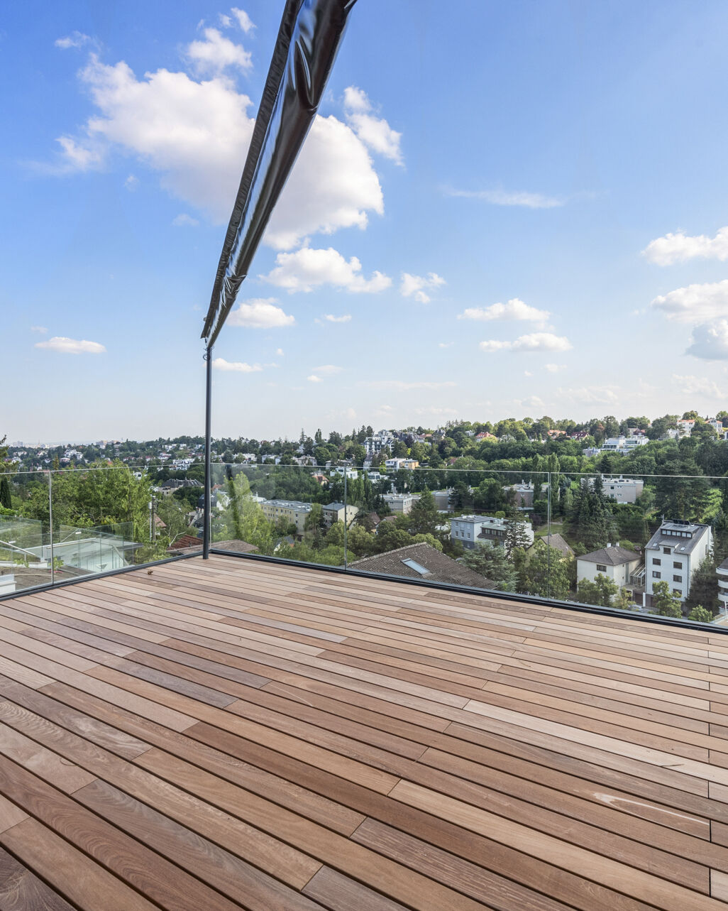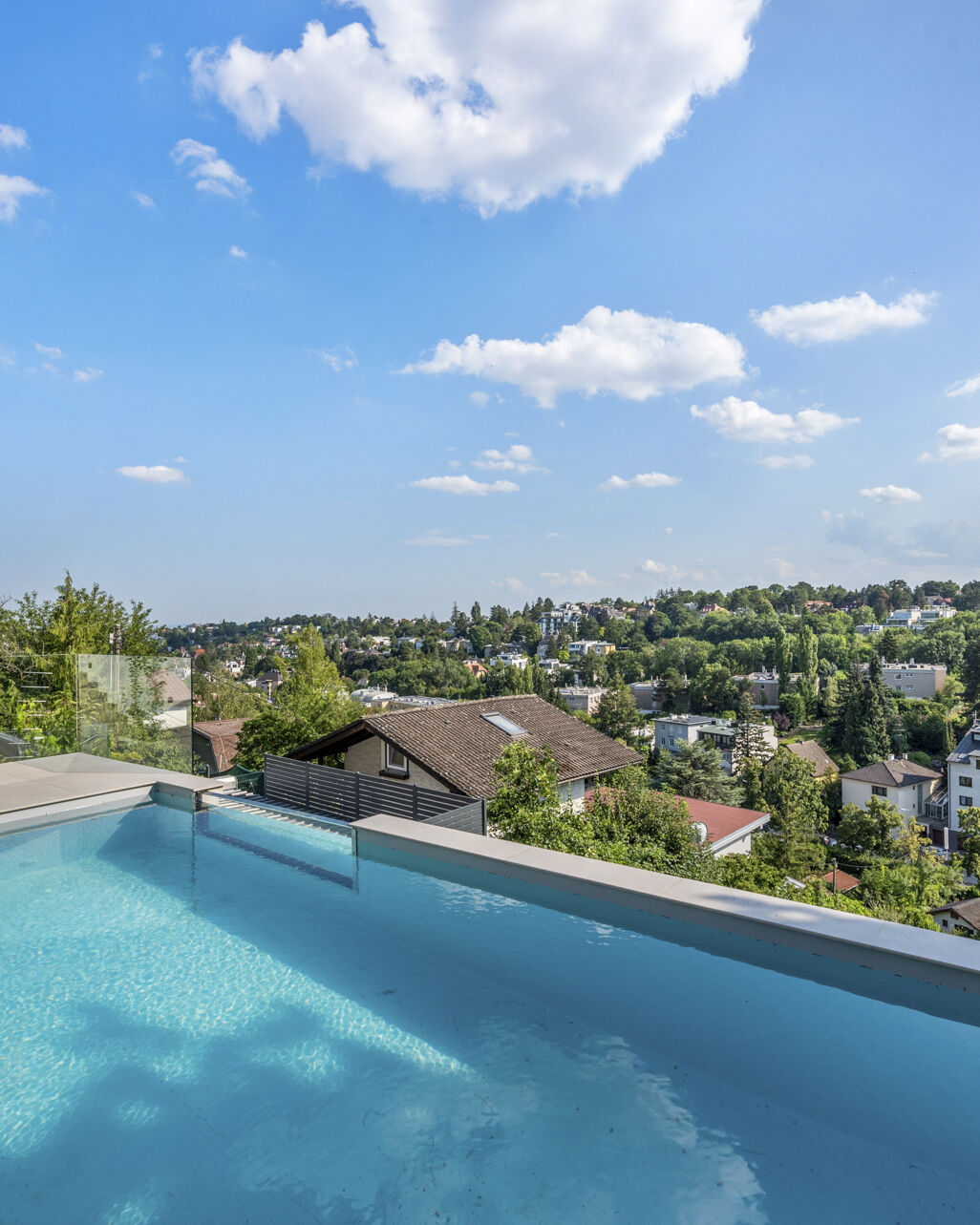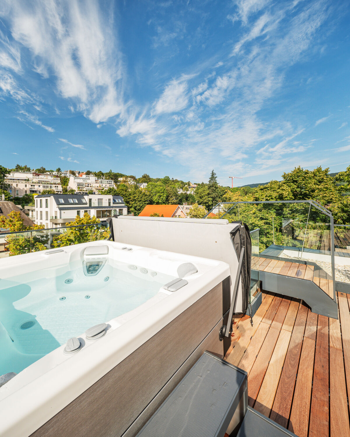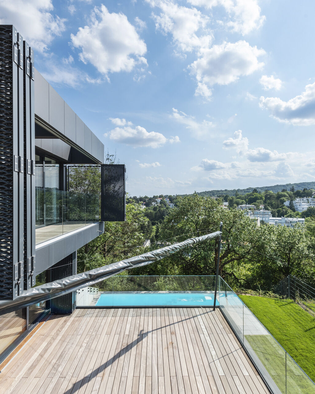 1190 ViennaNumber of apartments in total: 16At Hackenbergweg 43, 1190 Vienna, 17 exclusive villas with upmarket fittings are being built. The quiet location in the middle of the vineyards also impresses with a wonderful view of Vienna, which can be enjoyed without restriction from the private terraces and balconies. The skilfully designed villas are spread over 3 floors and are harmoniously complemented by private pools and parking spaces. The turnkey handover is scheduled for summer 2023. -