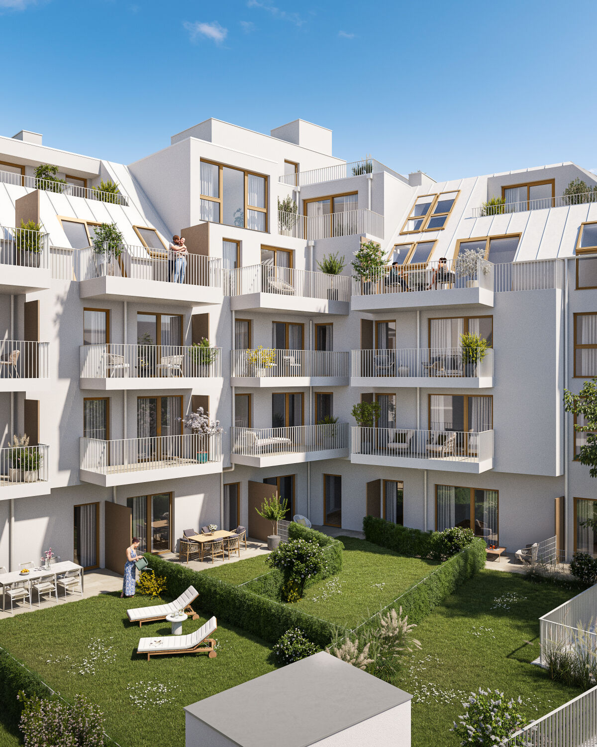 1220 ViennaNumber of apartments in total: 29 Completion: End of 2nd quarter 2024Located between Donaupark and Kagran is the latest Gründerzeit property to be revitalised by Viennese apartment building developer 3SI Immogroup to its usual outstanding standard. The attractive 1- to 4-room flats range in size from 30 m² to 126 m² and feature high-quality fittings and newly created open spaces in the quiet inner courtyard. -
