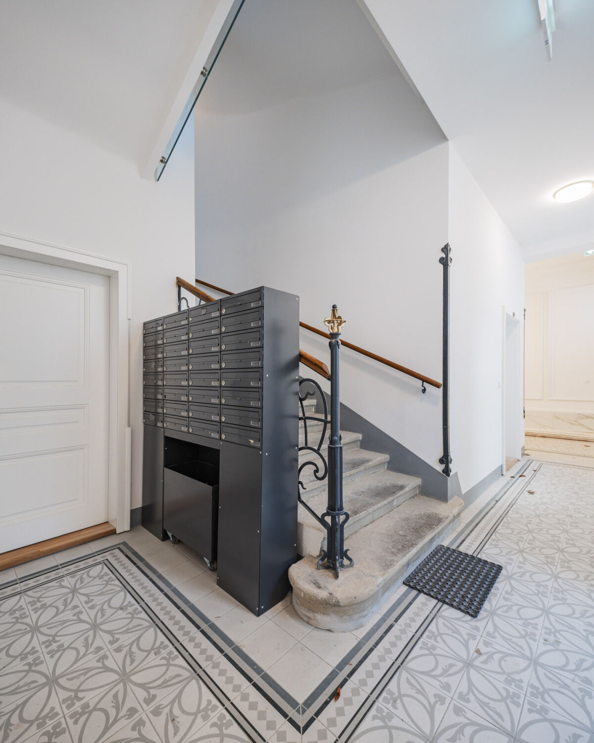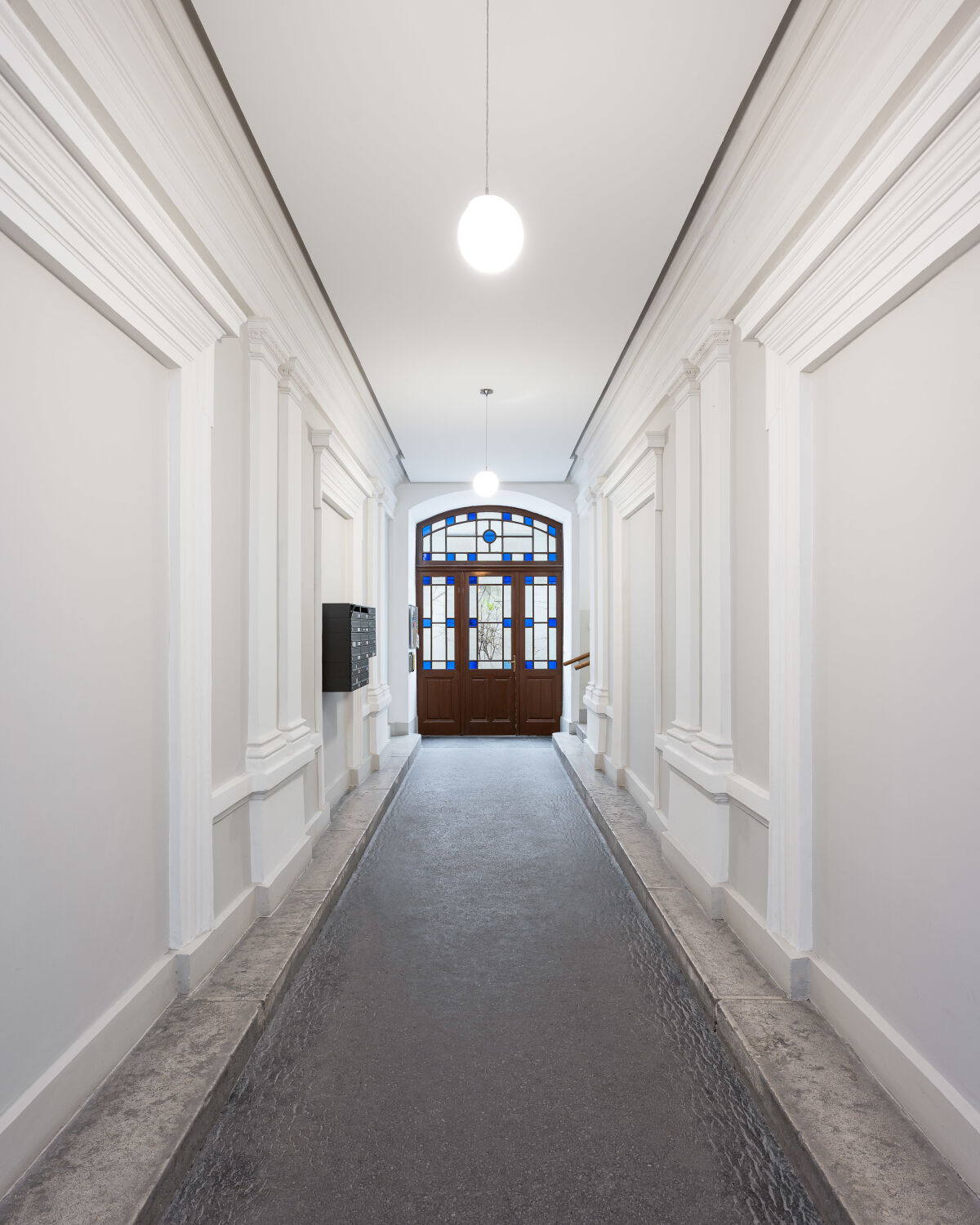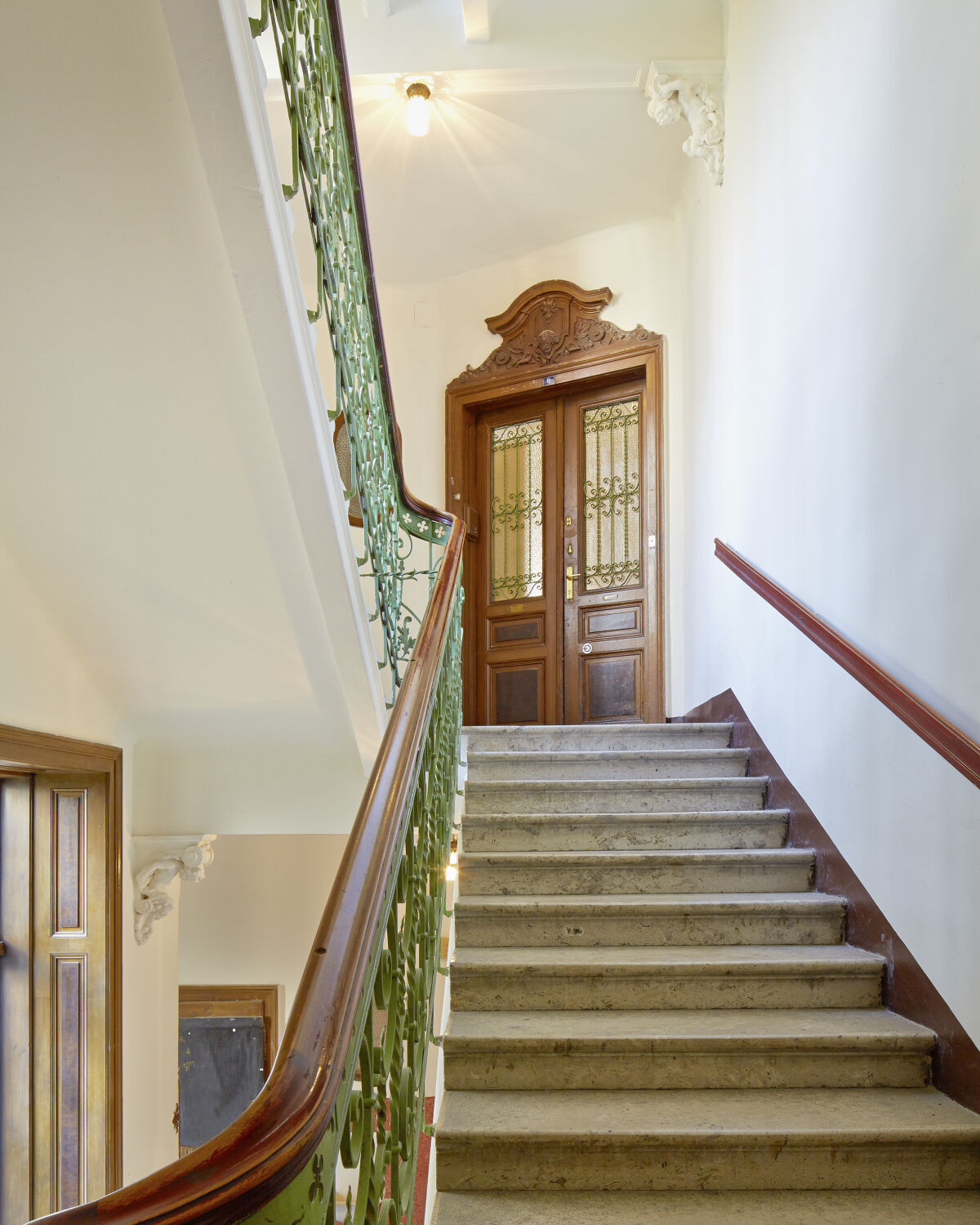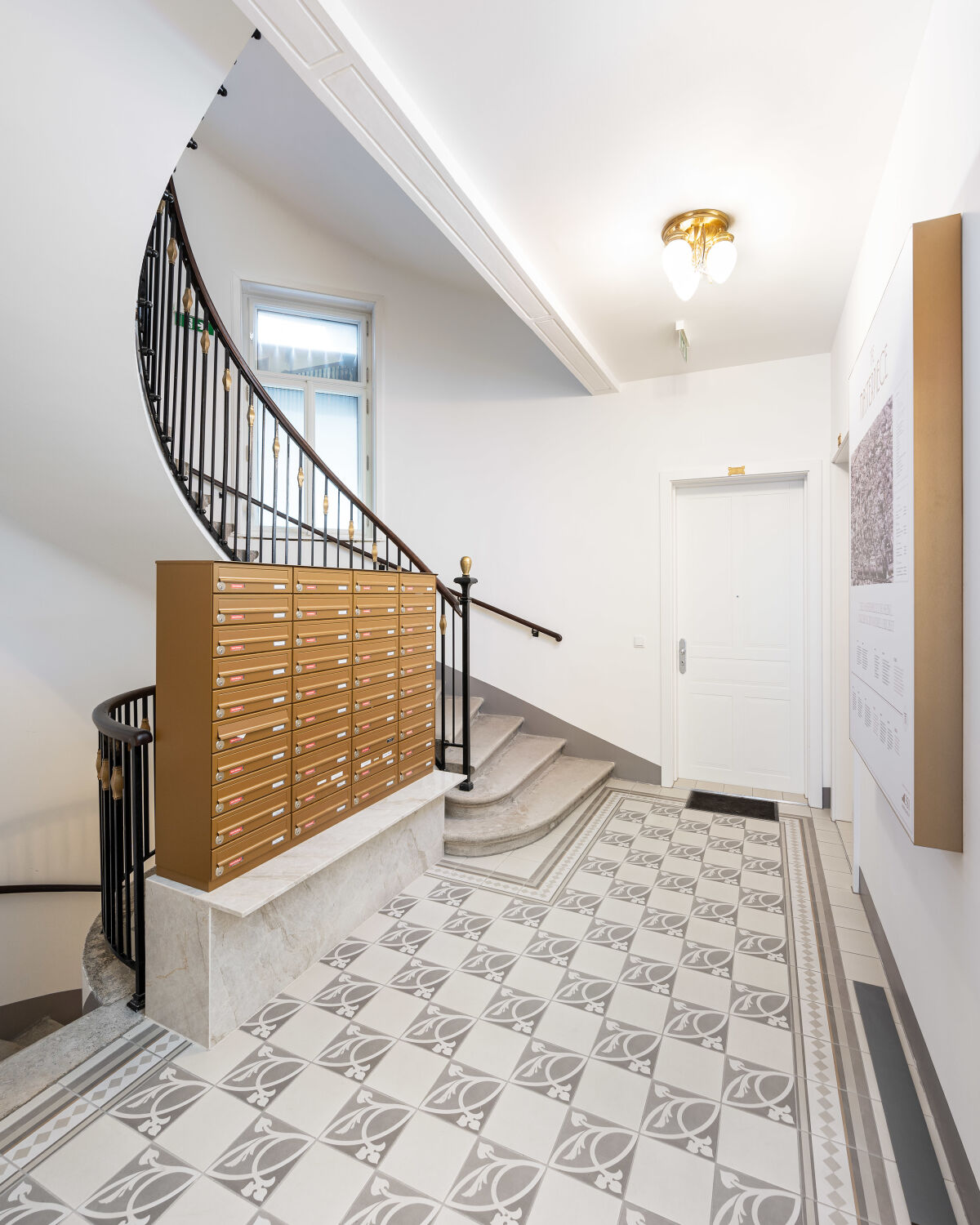 1090 ViennaThe apartment block at Glasergasse 11, 1090 Vienna, close to Porzellangasse, Liechtensteinpark and the Danube Canal, is a classic period building from the turn of the century. During the refurbishment by 3SI Immogroup, particular attention was paid to restoring the elegant character of the Wilhelminian era to the structured façade and the inviting entrance area. A lift was also installed as part of the loft conversion. The bright, inviting staircase leads to the 14 charming and spacious flats in the old building. -