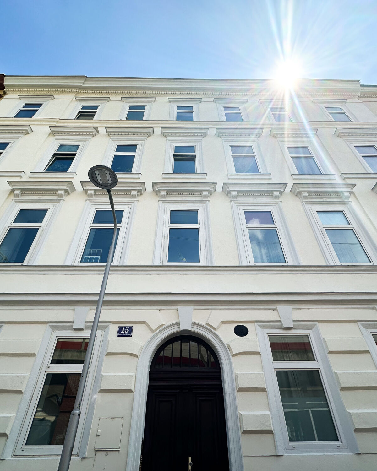1090 ViennaThe beautiful historic Wilhelminian-style corner building at Borschkegasse 15, 1090 Vienna, enchants with an elegant entrance and a staircase that has been lavishly restored by 3SI Immogroup, in which countless well-preserved period building elements can be admired. In addition to the stylish and high-quality revitalisation of seven owner-occupied flats, new balconies were built on the courtyard side. A particular advantage is the proximity to the AKH and numerous public transport options, which provide ideal connections to Vienna's city centre. -