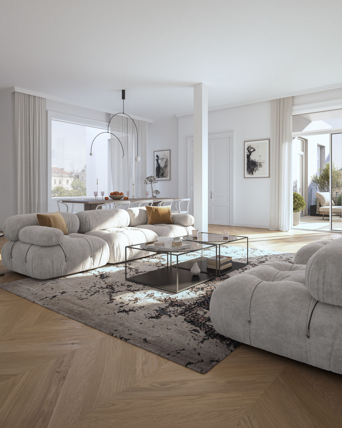 1020 ViennaNumber of apartments in total: 12The old Leopoldstadt period building at Große Pfarrgasse 6, 1020 Vienna, will be extensively refurbished by 3SI Immogroup in 2020/21, the previously plain façade will be visually enhanced with new stucco and the top floor will be extended. Nine exclusive condominiums and three luxurious penthouses with unrivalled views of the green Augarten park offer living spaces ranging from 54 to 1342 m². The revitalised period building boasts modern technology, high-quality fittings and courtyard-side open spaces in a great location near Karmelitermarkt. -