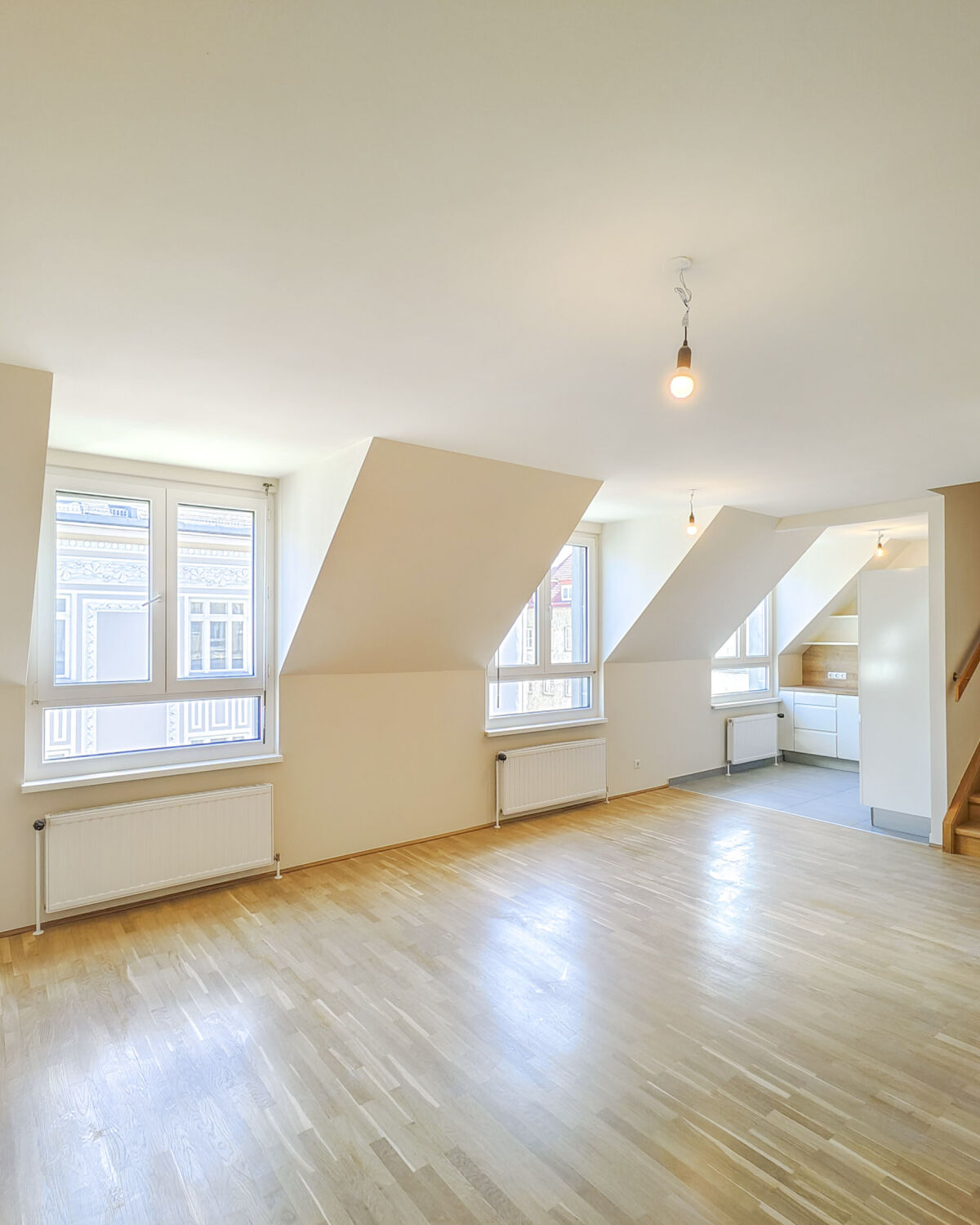 1050 ViennaNumber of apartments in total: 23 Completion: expected 4th quarter 2024The period building in Siebenbrunnengasse, built around 1890, is being extensively renovated by 3SI Immogroup and connected to Vienna's district heating network. The 23 freehold flats offer living space of between 30 and 119 m², 1 to 4 rooms and newly constructed open spaces. Four exclusive top-floor flats will be created as part of the loft conversion. -