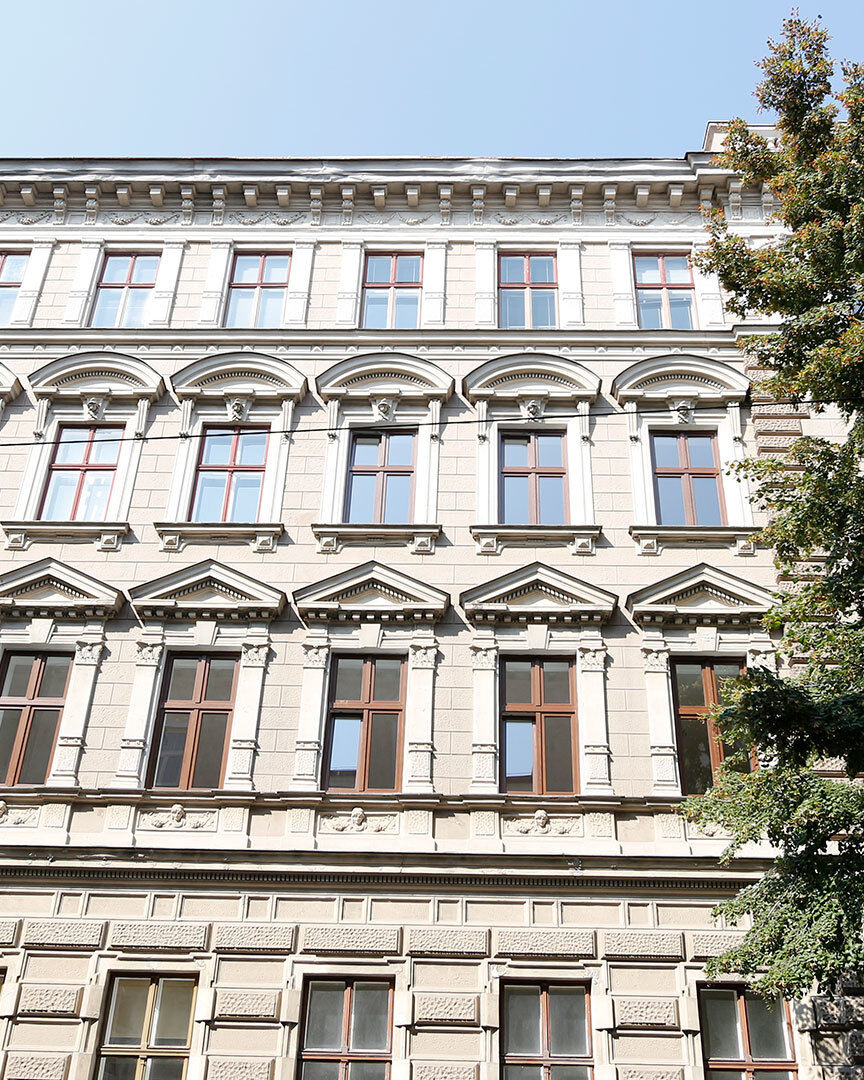 1090 ViennaIn this corner property built around 1900 at Roßauer Lände 17, 1090 Vienna, 3SI Immogroup revitalised the entire apartment building; the façade, entrance area and staircase were renovated in the style of old Vienna. In addition, the top floor was extended and high-quality new living space was created by 3SI in a sought-after location in the Servitenviertel. Loggias and terraces facing the courtyard round off the high-quality property offer. -