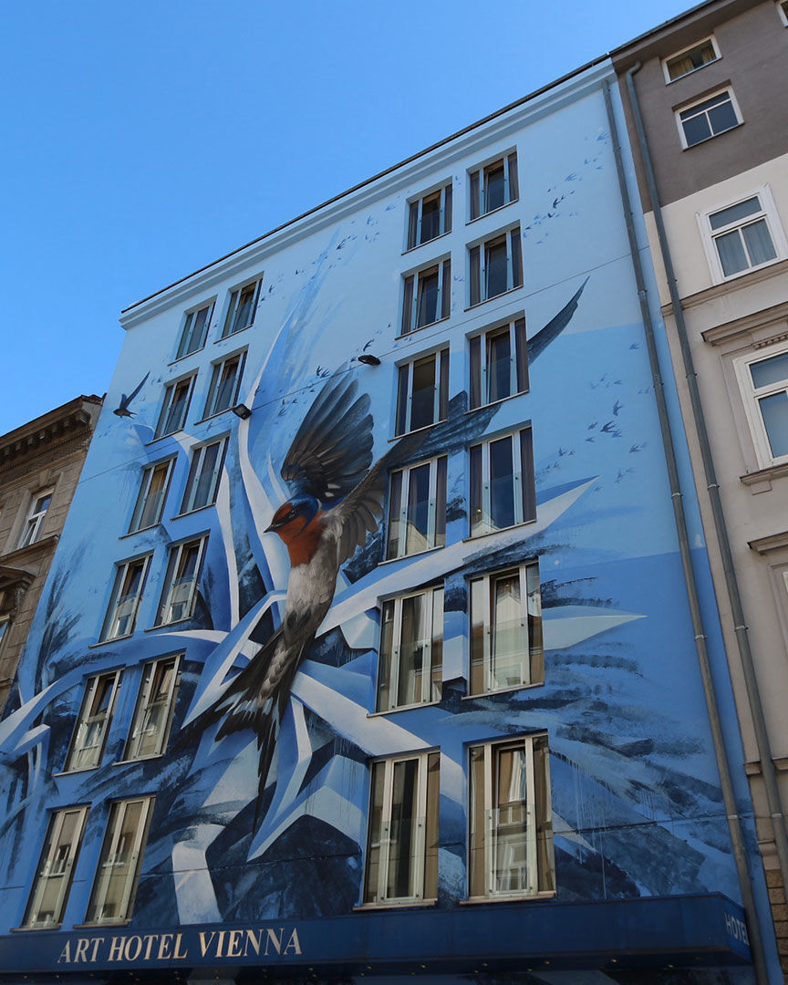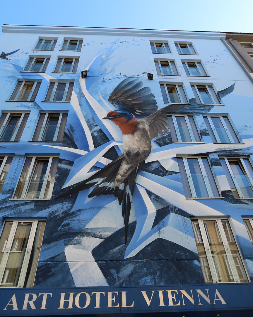 1050 ViennaThe Art Hotel Vienna is centrally located in Vienna's 5th district of Margareten and offers its guests excellent connections to Vienna's city centre. The hotel welcomes its visitors with over 100 different works of art - from contemporary paintings to artistic sculptures. In addition, there are constantly changing exhibitions and art events at the Art Hotel, but the graffiti façade also emphasises the artistic flair. This was specially designed for the Art Hotel by graffiti artist Sarah "siuz" Kupfner. -