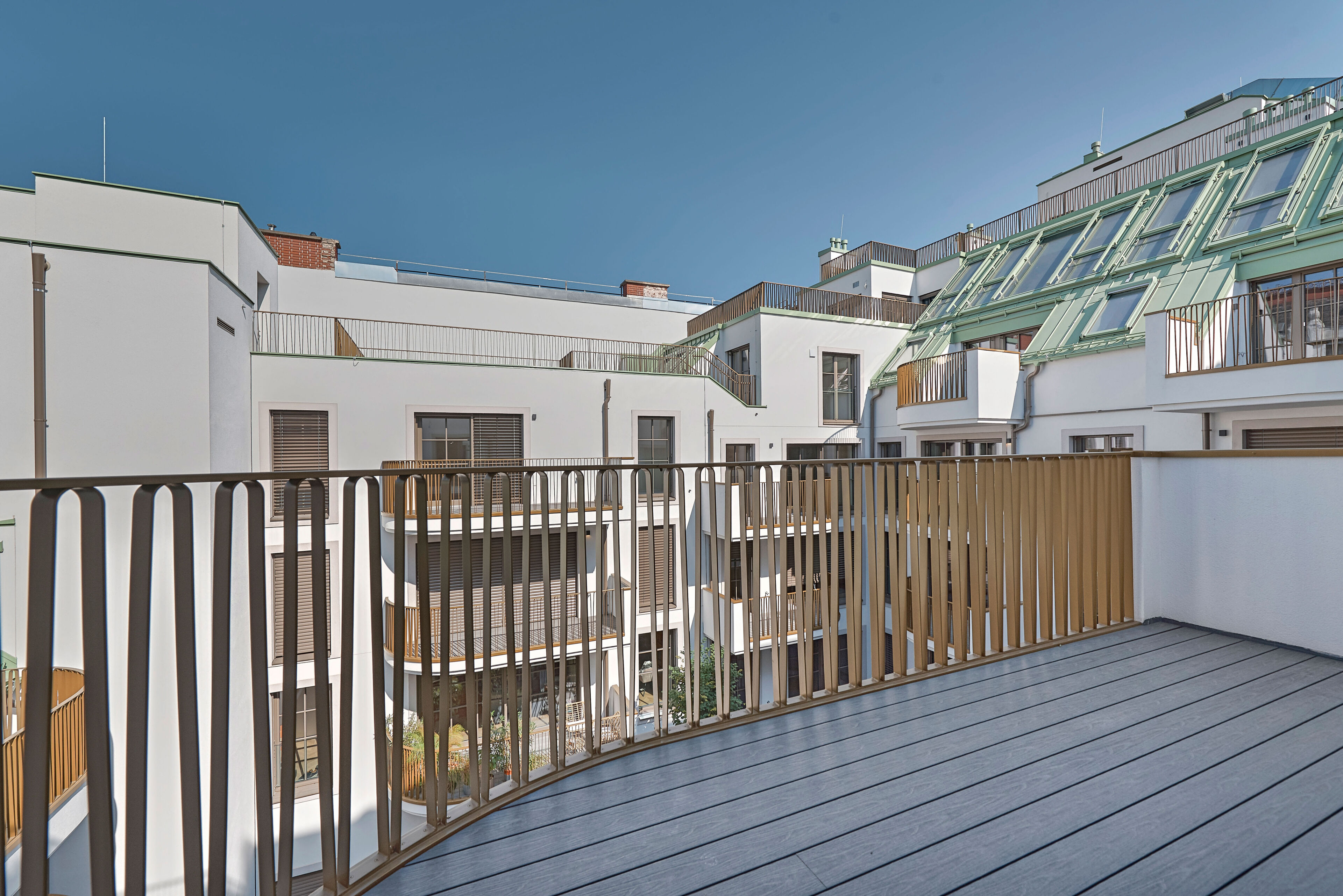 Insgesamt entstehen 46 exklusive Eigentumswohnungen und 2 straßenseitige Geschäftsobjekte mit Gewölbedecke im Ausmaß von 50 bis 170 qm. Die Einheiten sind als 2- bis 4-Zimmer-Wohnungen geplant, auf Wunsch sind Zusammenlegungen möglich. Die Raumhöhen betragen zwischen 2,52 m und 3,35 m. THE FUSION überrascht mit einem sich in die Tiefe öffnenden, grünen Innenhof inmitten dieser urbanen Umgebung. Beinahe alle Objekte verfügen über Freiflächen, wie Balkone, Terrassen, Dach- sowie Gartenterrassen. Die beiden Dachgeschoßebenen und das letzte Regelgeschoß sind klimatisiert. Alle Wohneinheiten verfügen über eine luxuriöse und durchdachte Ausstattung.