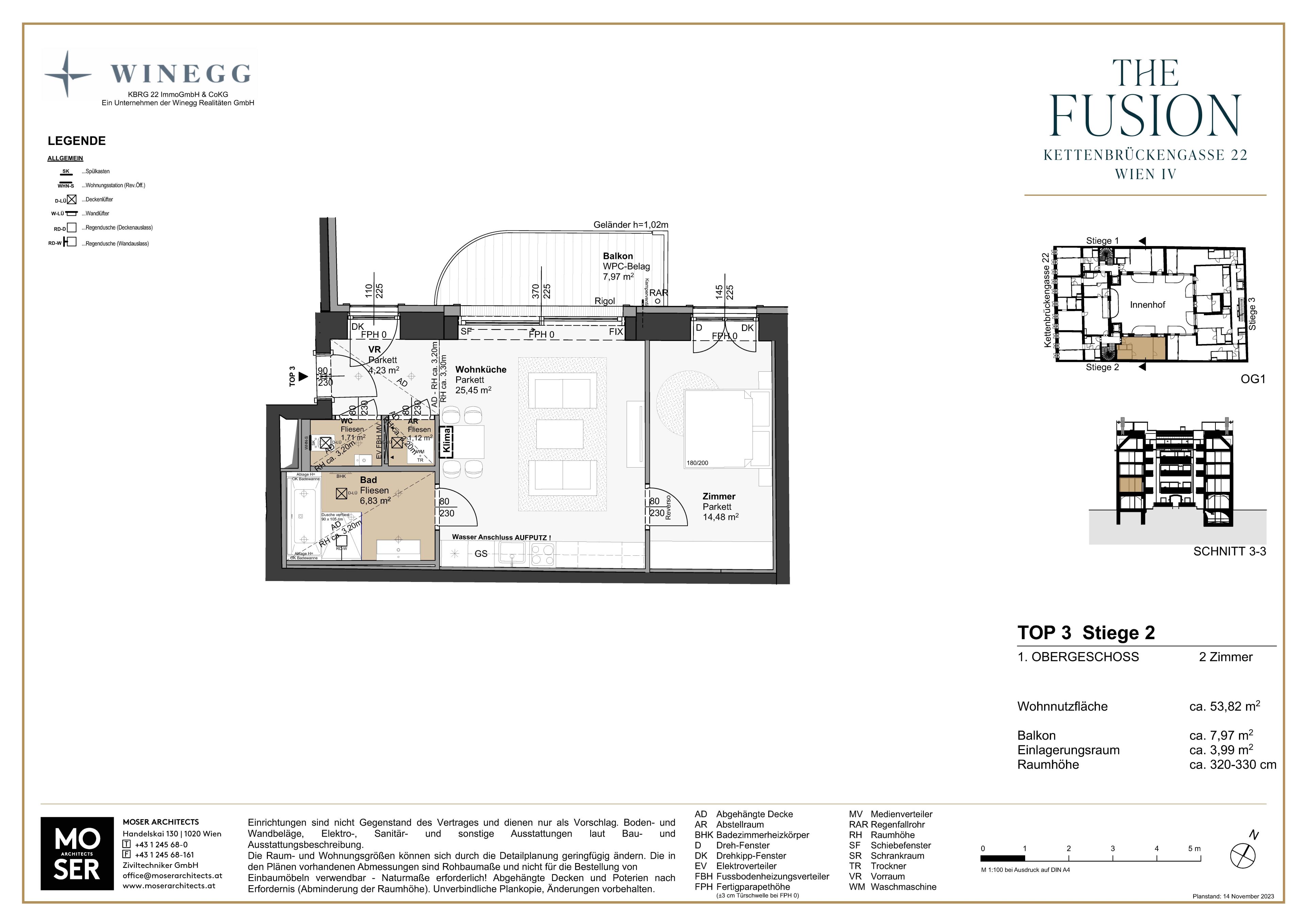 Direkt am Naschmarkt vereint das Projekt „THE FUSION by WINEGG“ eindrucksvoll unterschiedliche Einflüsse und bündelt das Beste aus mehreren Epochen. Der geschichtsträchtige Vordertrakt der Liegenschaft in der Kettenbrückengasse 22 ist dem Biedermeier zuzurechnen und wurde 1827 vom Bauherren Friedrich Sträussle erbaut. Erst in der Gründerzeit wurde der hintere Gebäudetrakt ergänzt. Dieser Hoftrakt wurde stets als Gewerbegebäude genutzt, während der Straßentrakt im Erdgeschoß als Geschäftsfläche diente und in den Obergeschoßen seit jeher Wohnungen beherbergte. Bei der zeitgemäßen Sanierung und sorgfältigen Modernisierung wird besonders darauf geachtet, den wertvollen historischen Charakter des Gebäudes innen wie außen auf respektvolle Weise zu bewahren. Die Fertigstellung ist für das 4. Quartal 2023 geplant.